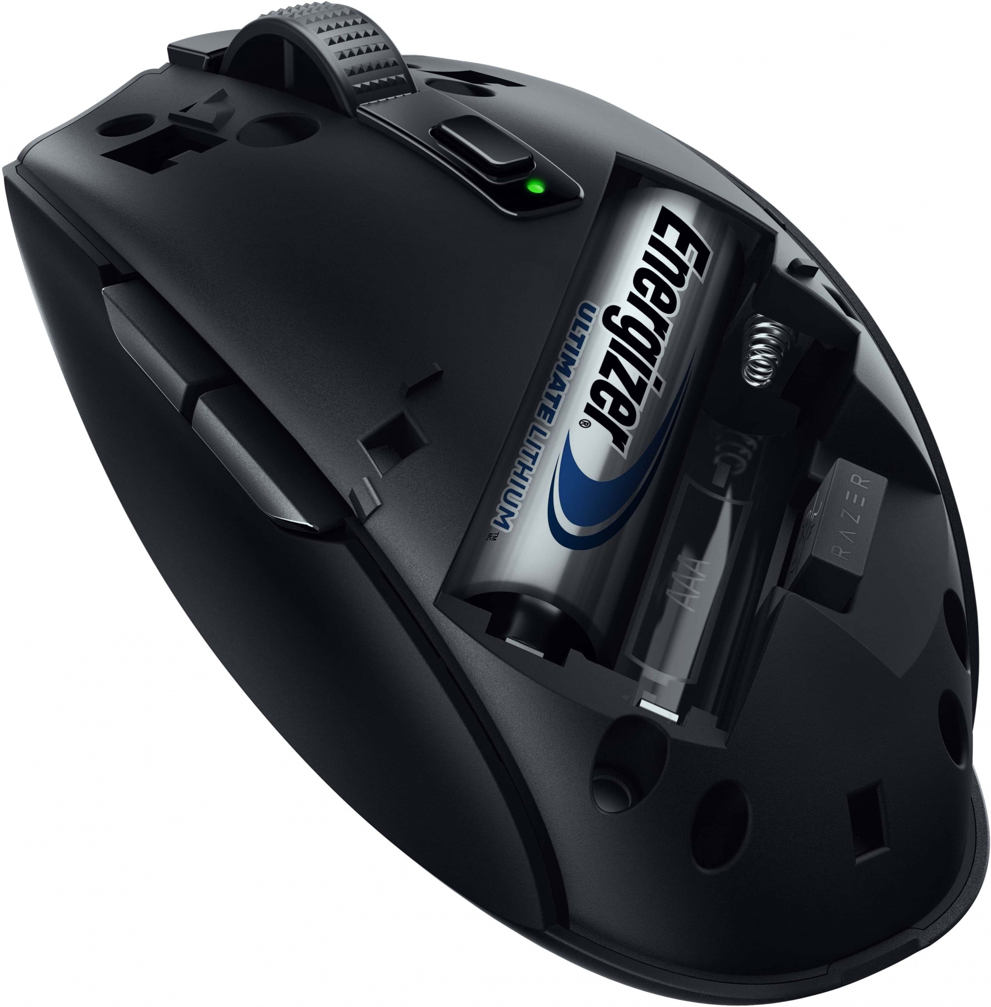 | Особенности | Оптический сенсор Razer 5G с разрешением 18 000 DPI. Подключение: 2 режима беспроводной связи (2,4 ГГц и BLE). Механические переключатели 2-го поколения Razer для мышей. Автономная работа: До 425 часов (2,4 ГГц), 950 часов (BLE) с включенной литиевой батареей AA. |