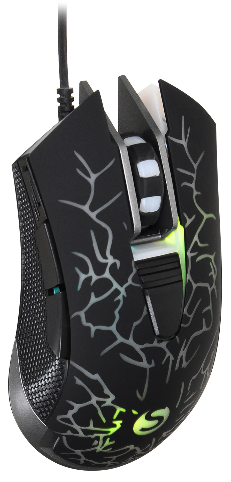 | Особенности | Игровая мышь с динамической подсветкой, оптический датчик высокого разрешения, кабель в прочной оплетке, рифленые боковые вставки |