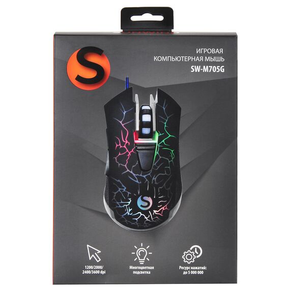 Мышь SunWind SW-M705G черный оптическая 3600dpi USB для ноутбука 6but [1422391]