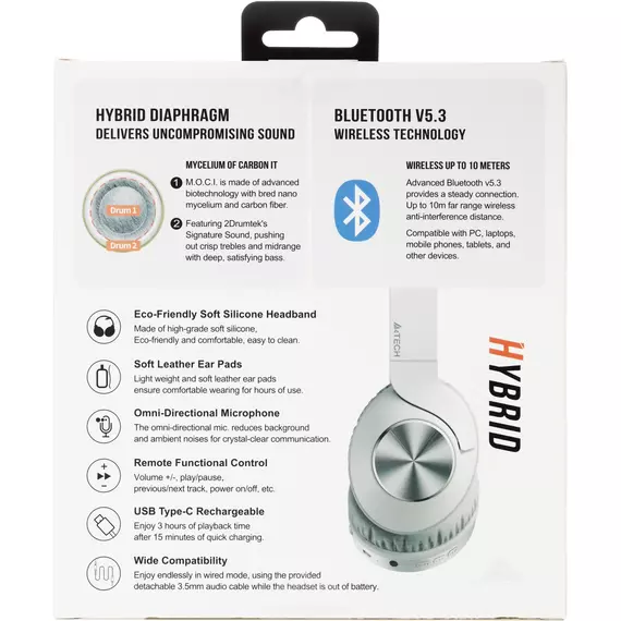 Описание A4-Tech 2Drumtek BH300 GRAYISH WHITE