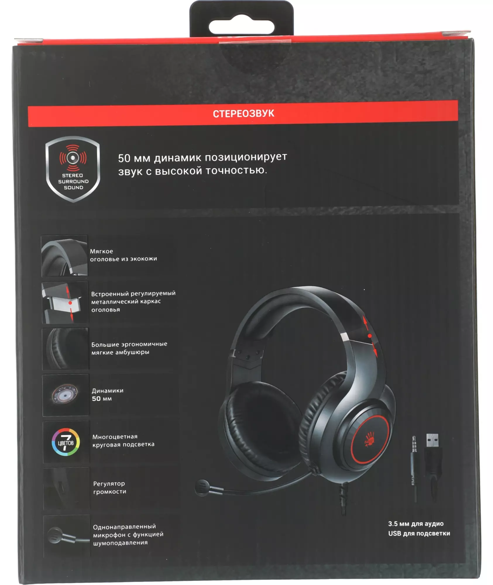 Наушники с микрофоном A4-Tech Bloody G220 черный 2м мониторные оголовье [G220 AUX3.5-4PIN + USB]