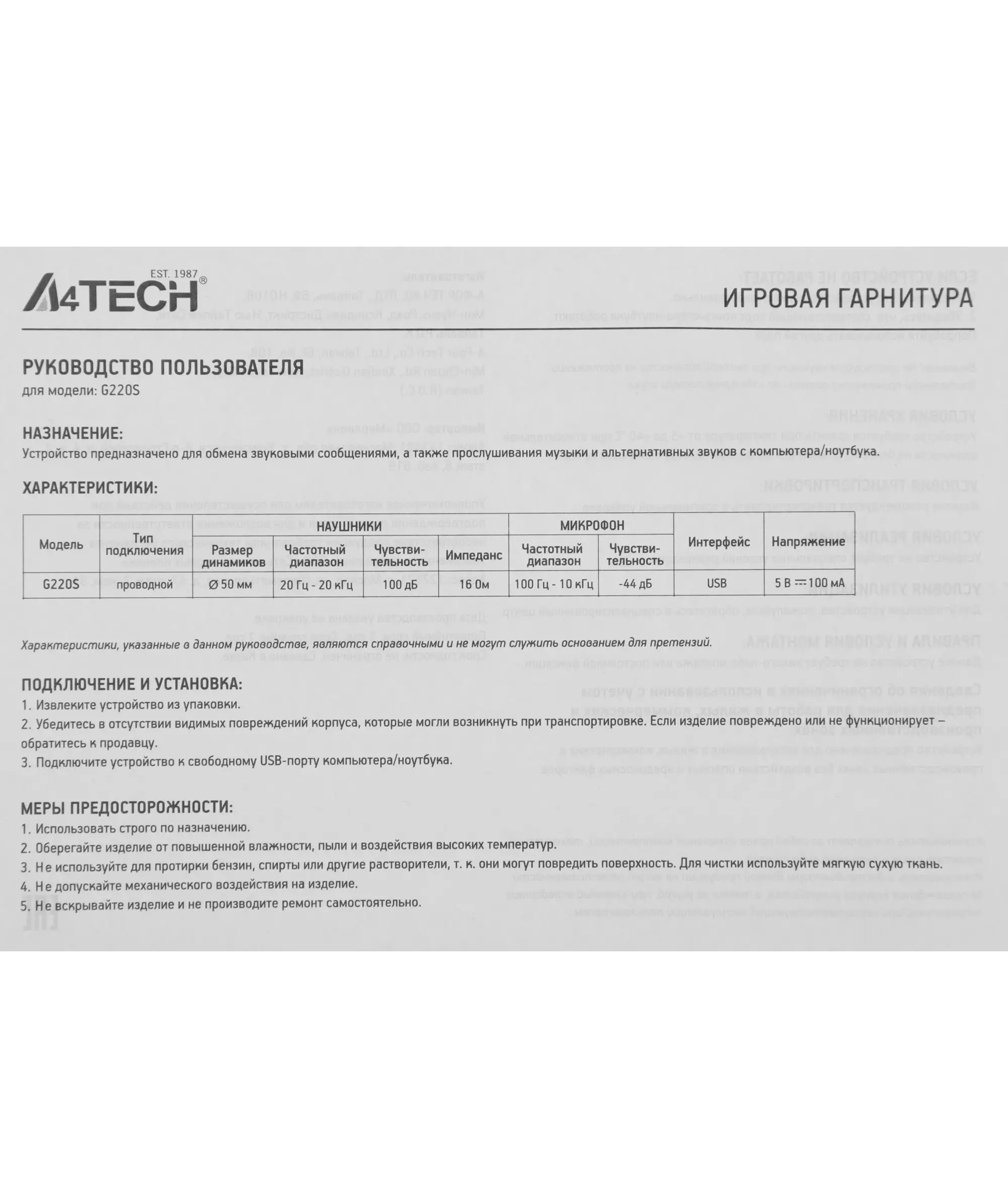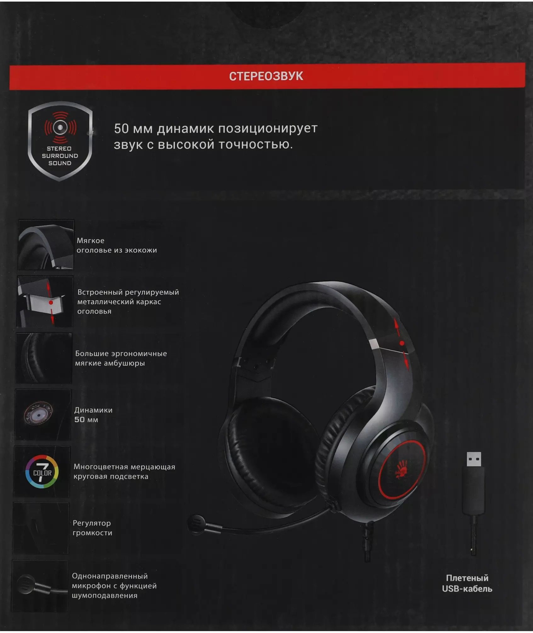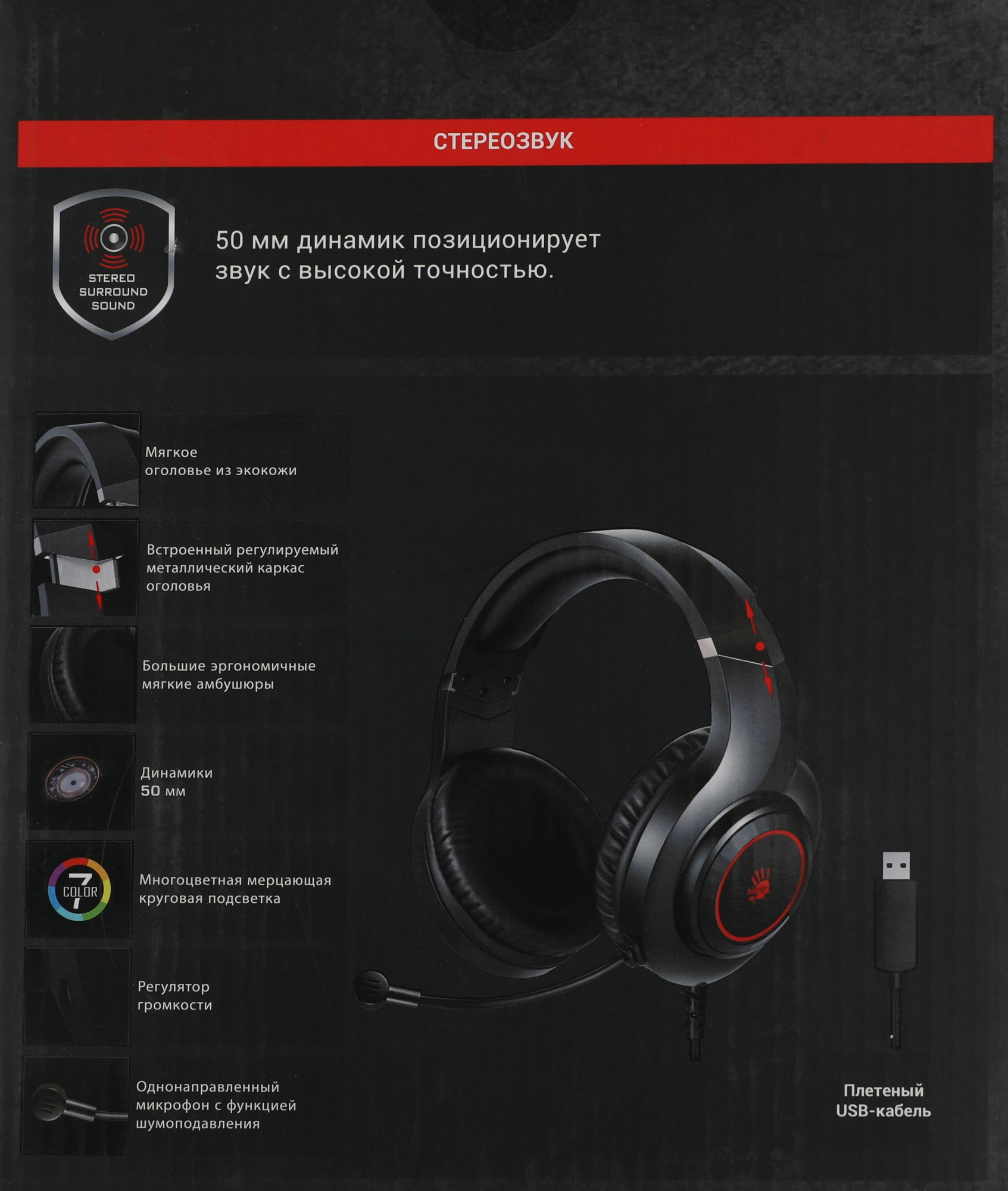Наушники с микрофоном A4-Tech Bloody G220S черный 2м мониторные USB оголовье