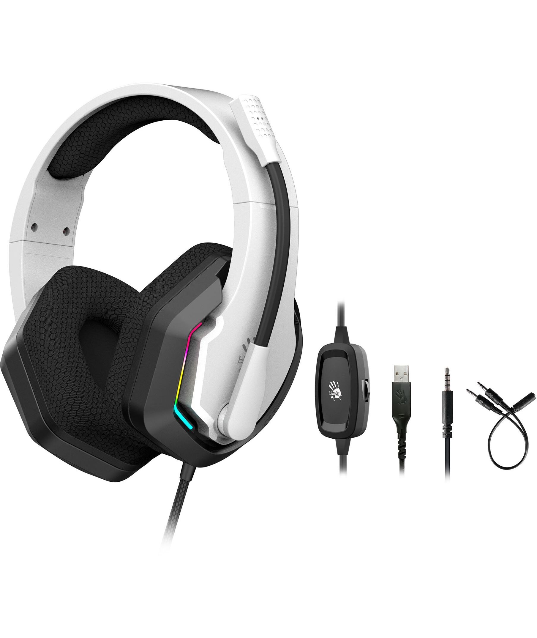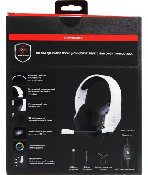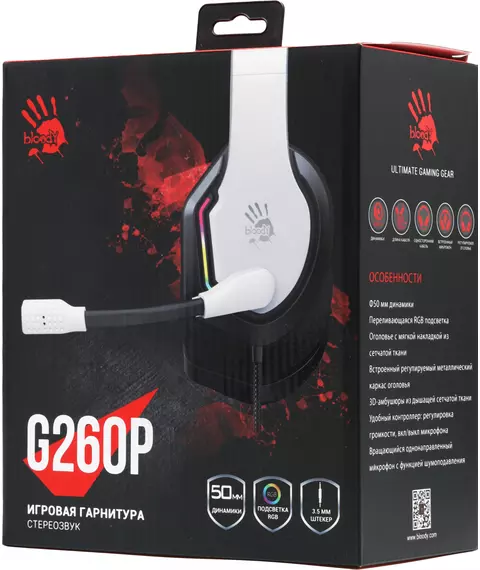 Наушники с микрофоном A4-Tech Bloody G260P белый/черный 2м мониторные USB оголовье [G260P]