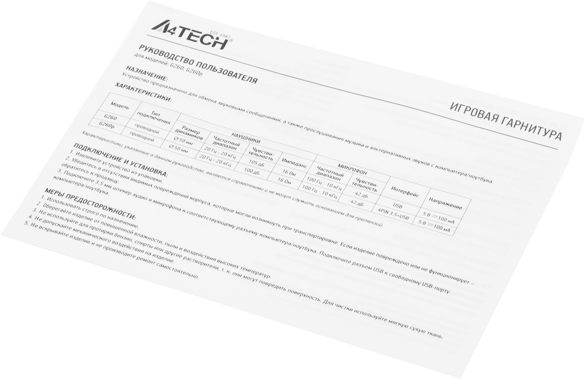 | Вес (без шнура) | 288 г |