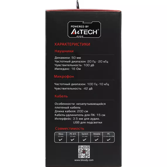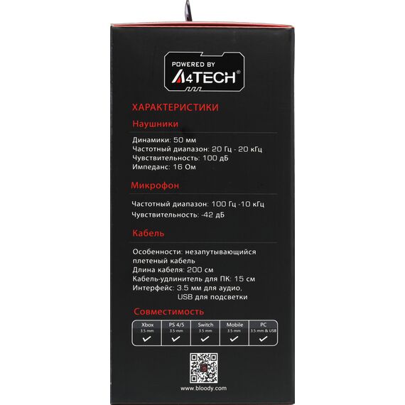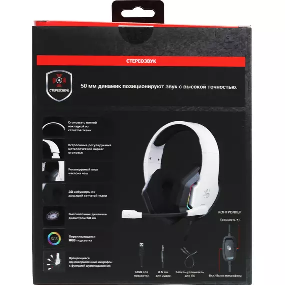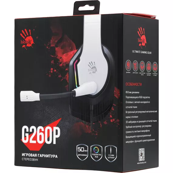 Наушники с микрофоном A4-Tech Bloody G260P белый/черный 2м мониторные USB оголовье [G260P]