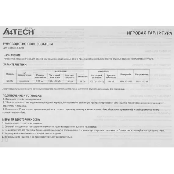 | Коннектор (гарнитура) | 1x3.5 мм/2x3.5 мм |