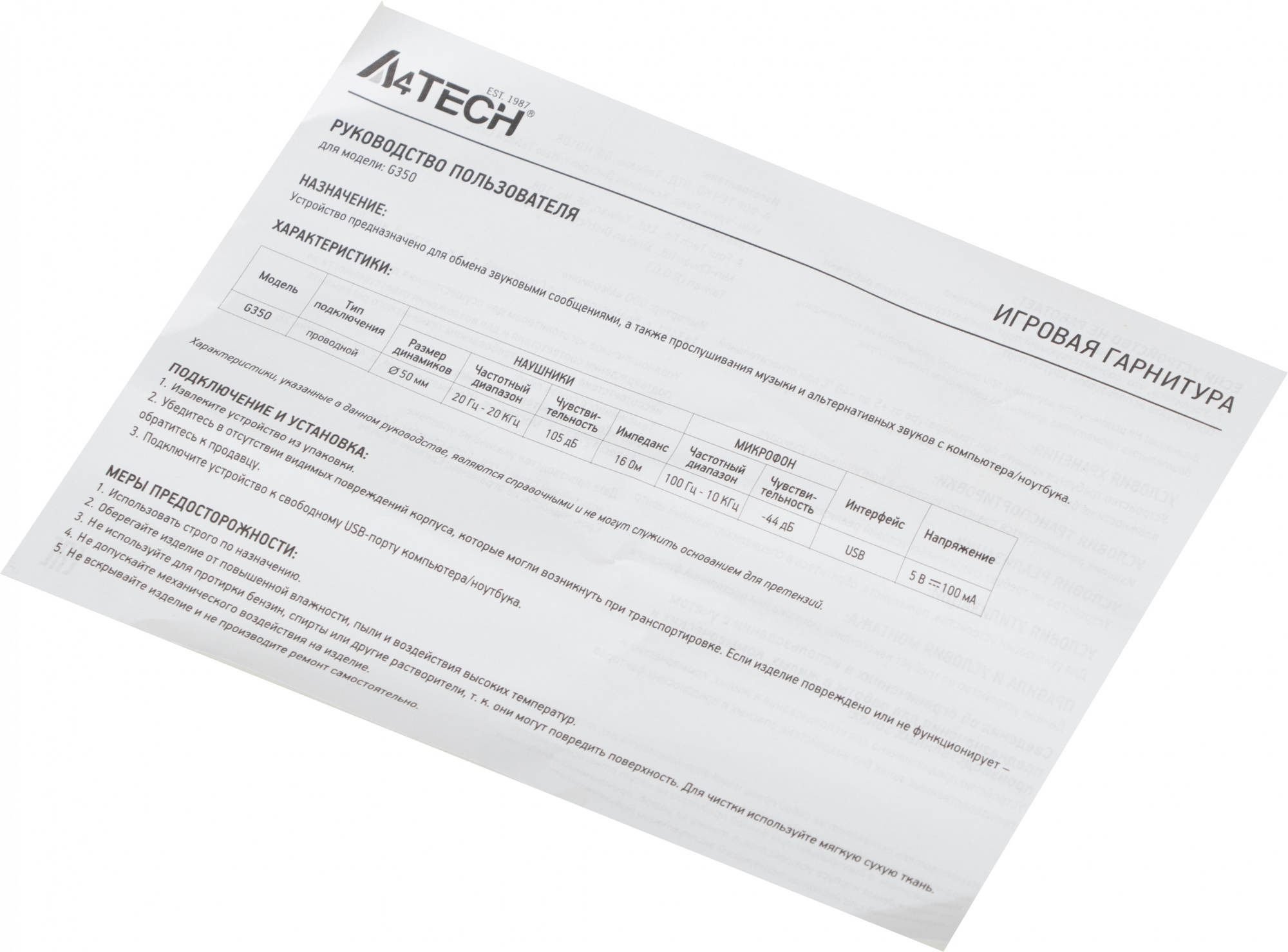 Наушники с микрофоном A4-Tech Bloody G350 черный 2м мониторные USB оголовье
