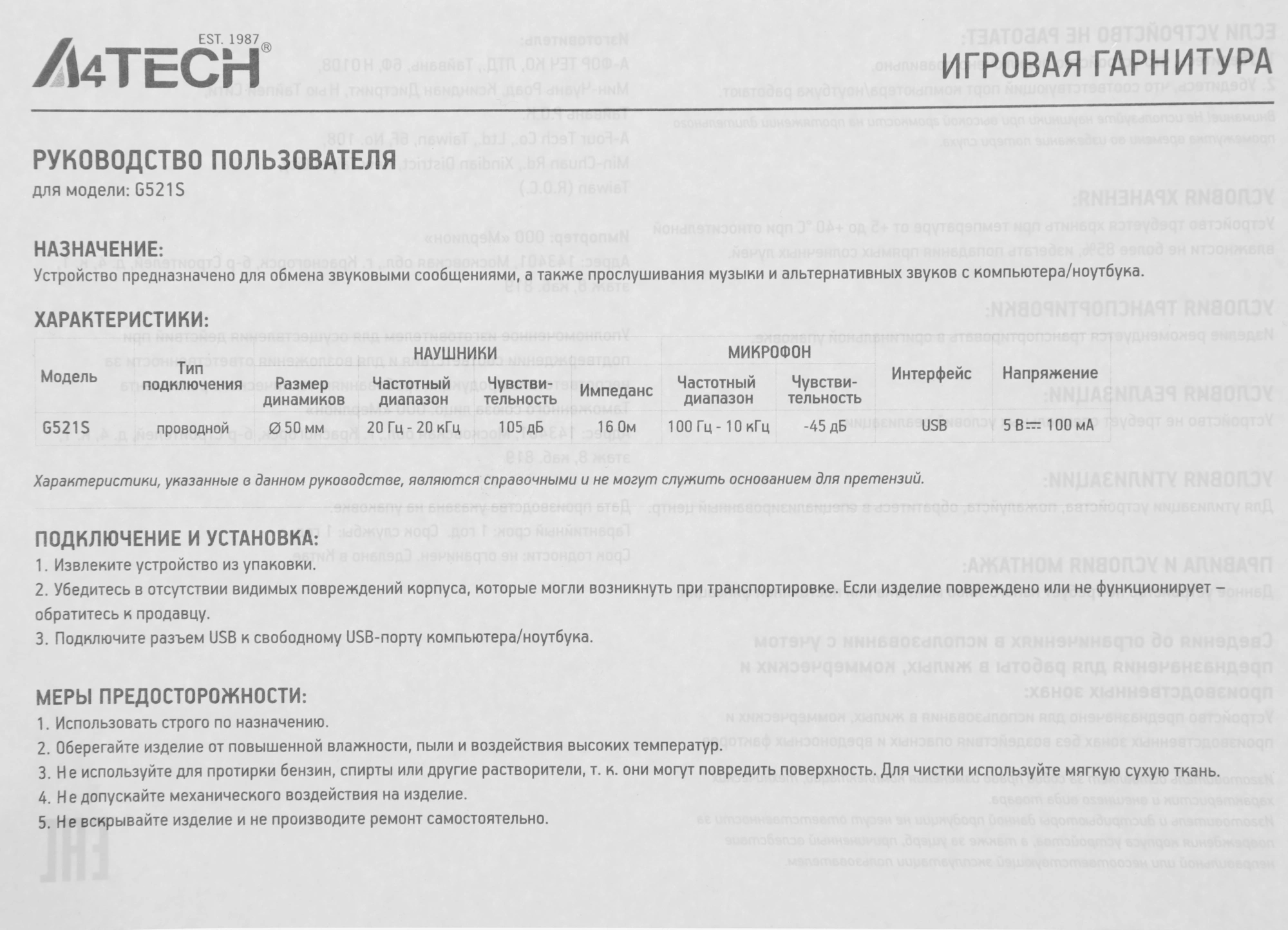 Описание A4-Tech Bloody G521S [G521S]