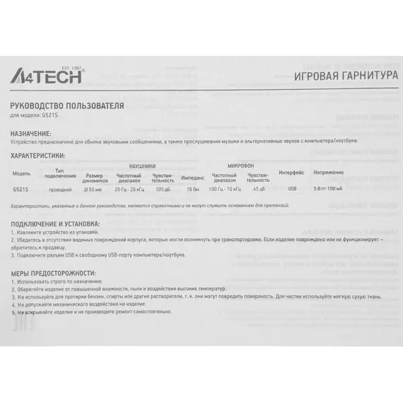 | Тип соединения гарнитуры | проводные USB |