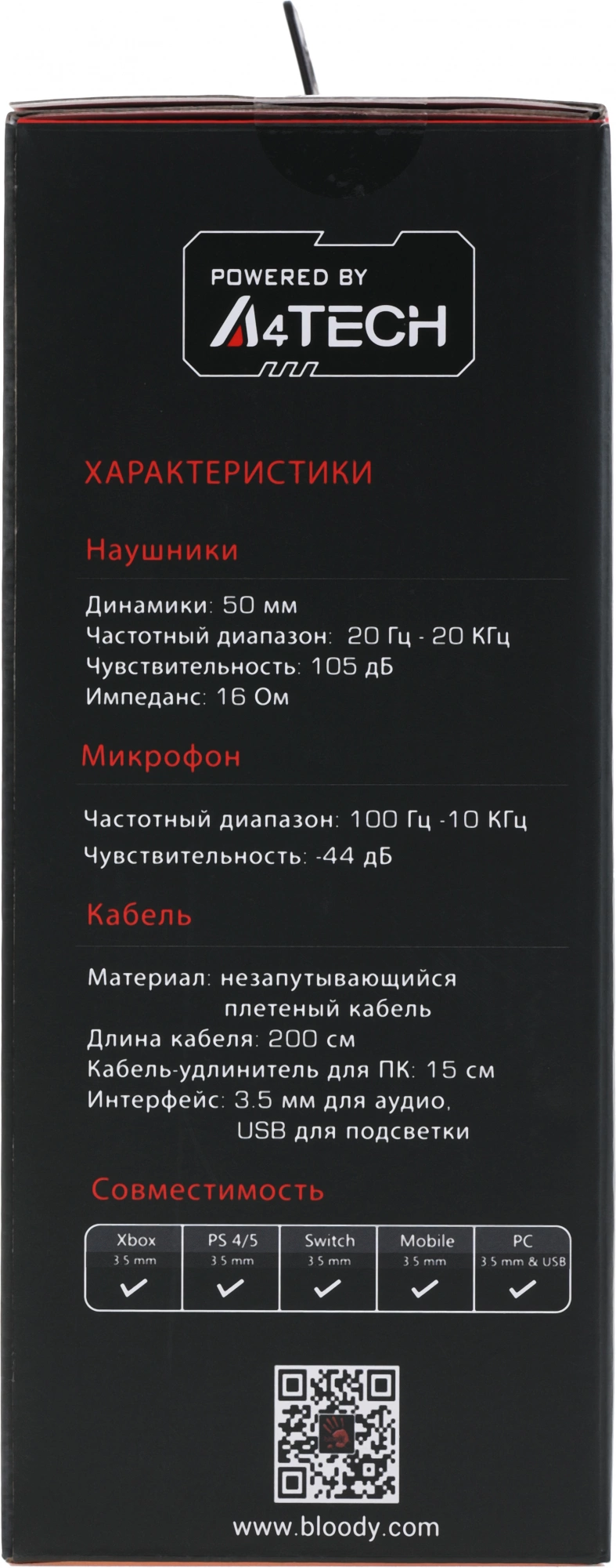 Описание A4-Tech Bloody G535P 4PIN+USB/BLACK+SILVER