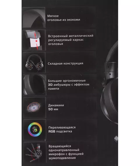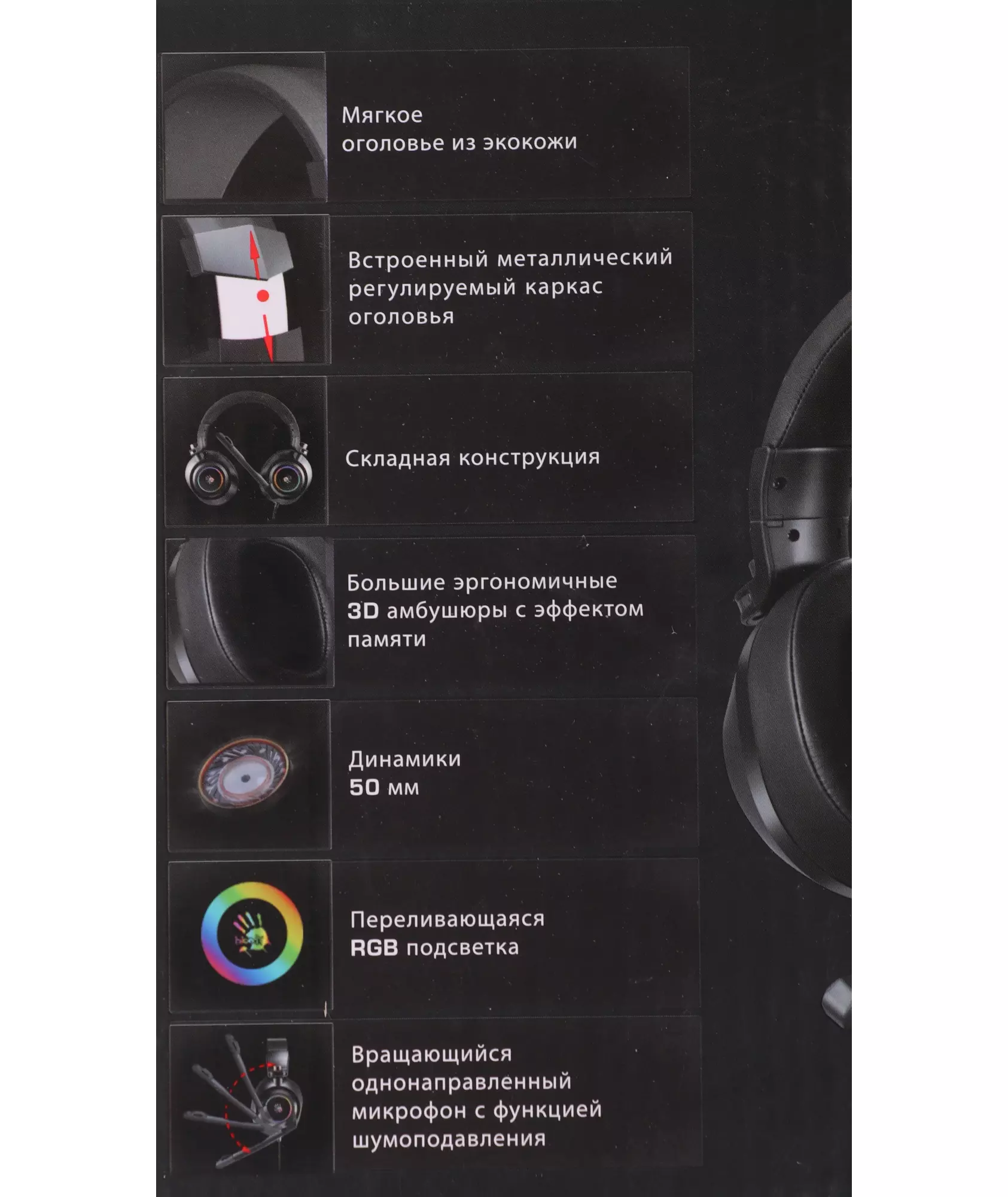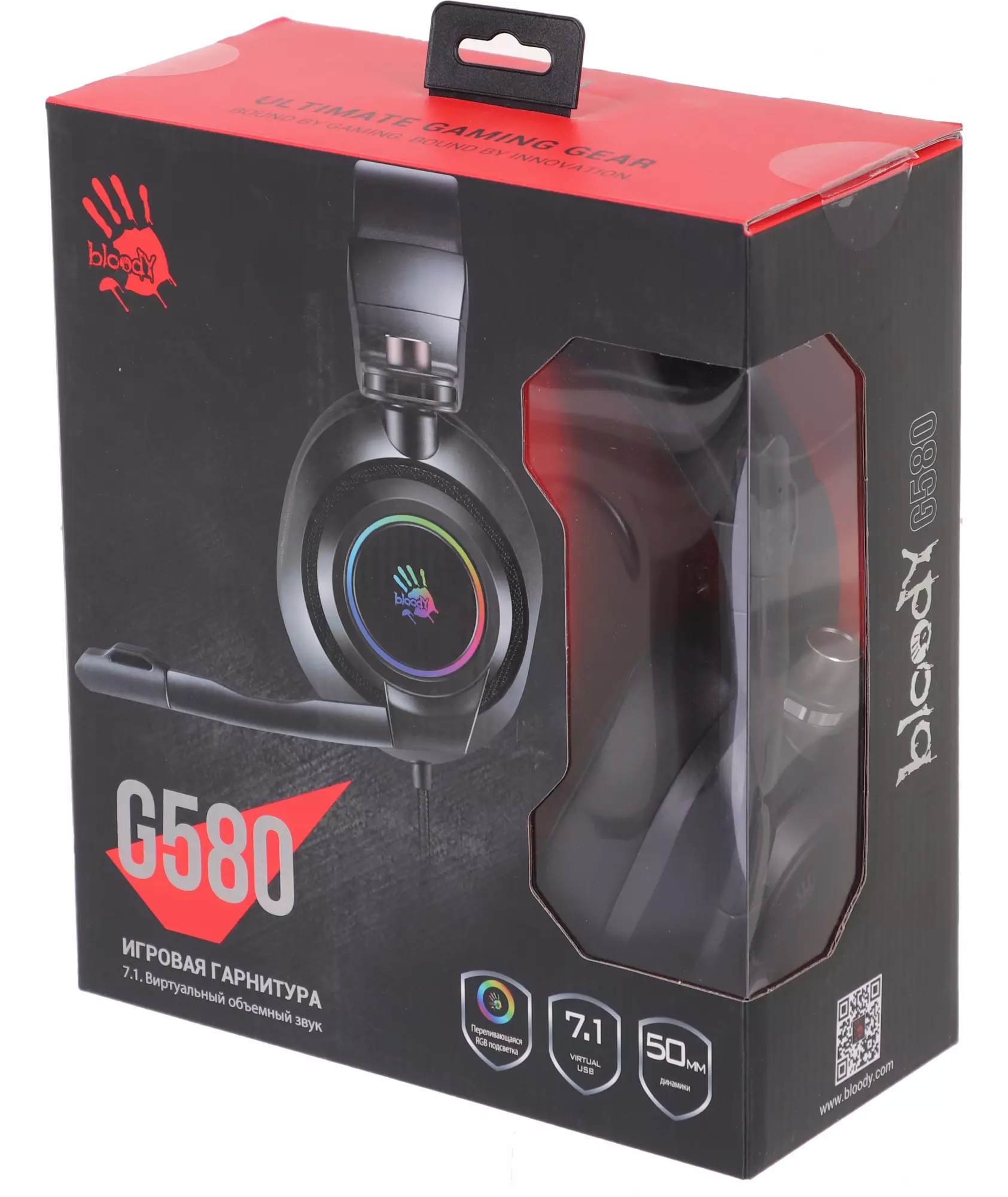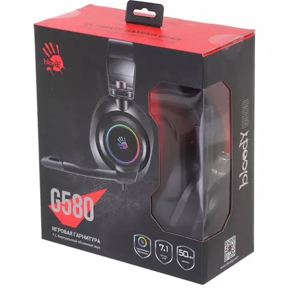 Наушники с микрофоном A4-Tech Bloody G580 USB /BLACK Черный, 2 м, мониторные, USB, оголовье