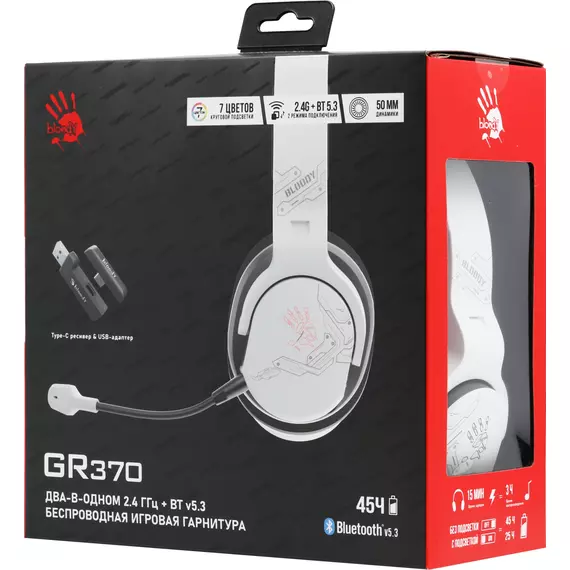 Наушники с микрофоном A4-Tech Bloody GR370 белый мониторные BT/Radio/3.5mm оголовье