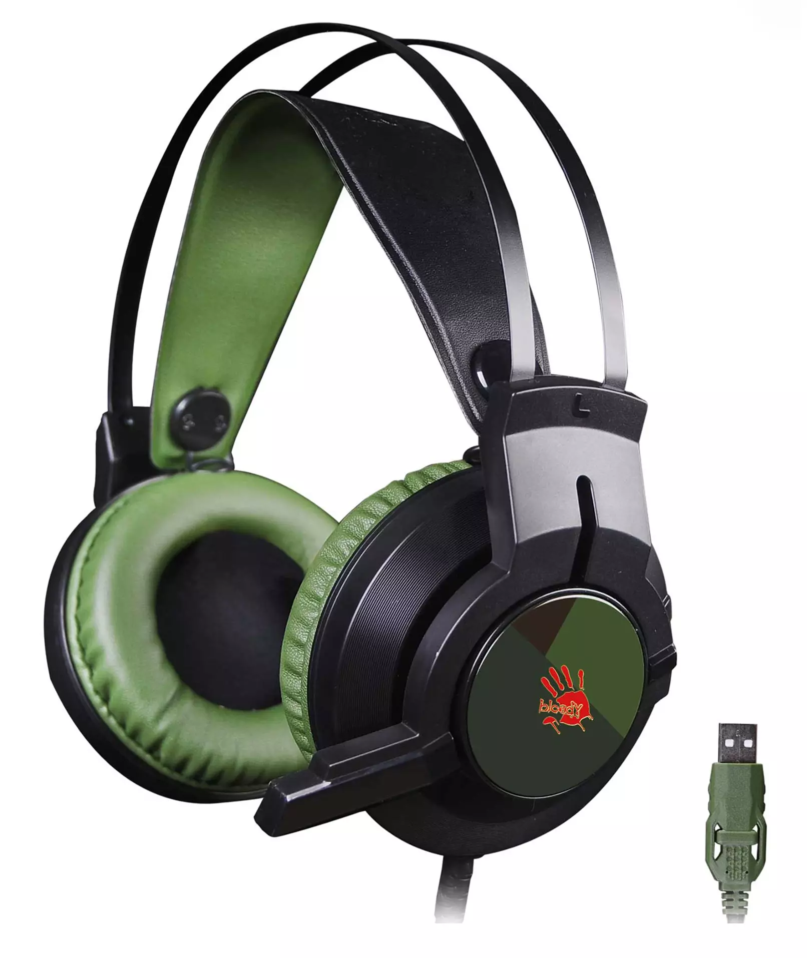 Наушники с микрофоном A4-Tech Bloody J450 черный/зеленый 1.8м мониторные оголовье