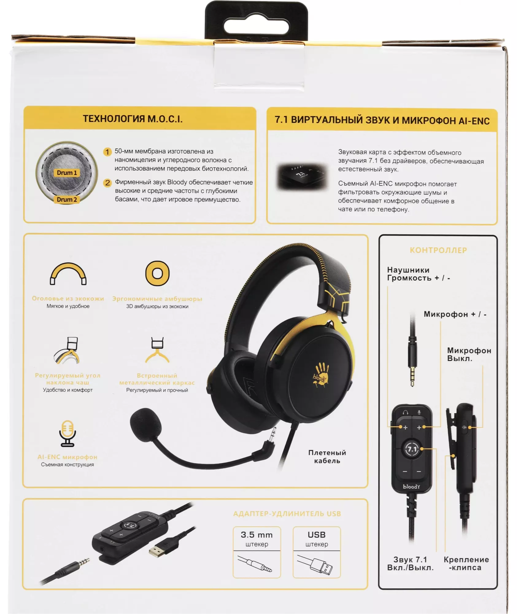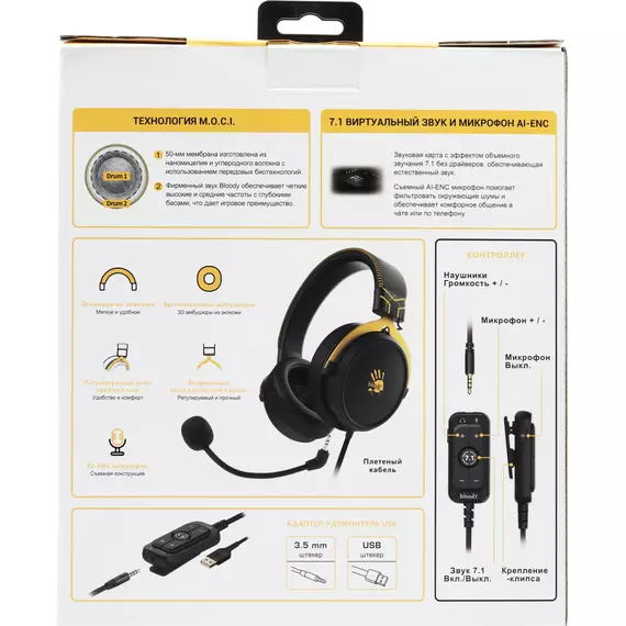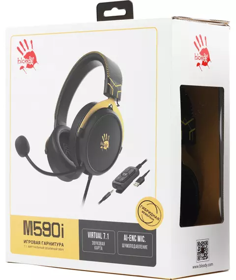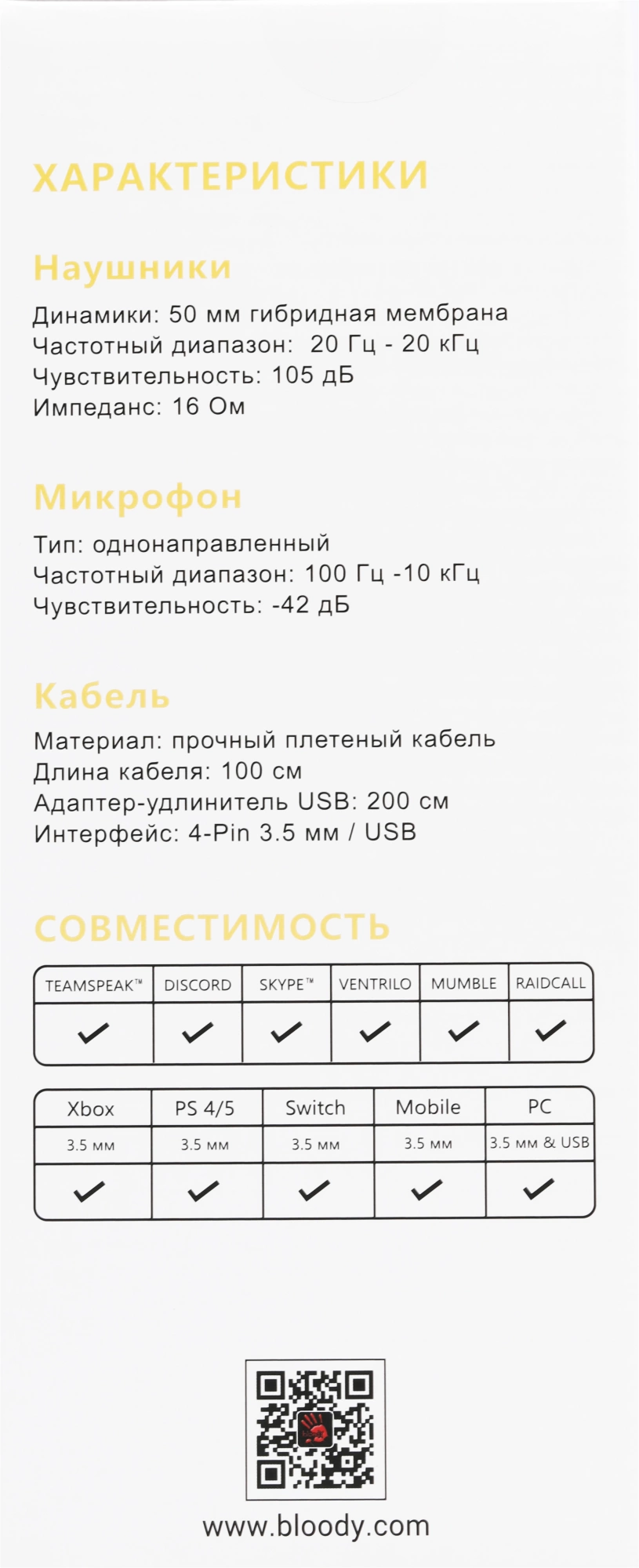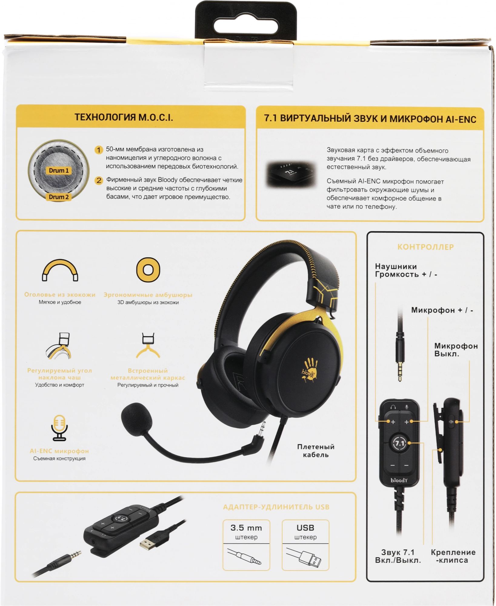 Наушники с микрофоном A4-Tech Bloody M590i SPORTS LIME желтый/серый 1м мониторные USB оголовье