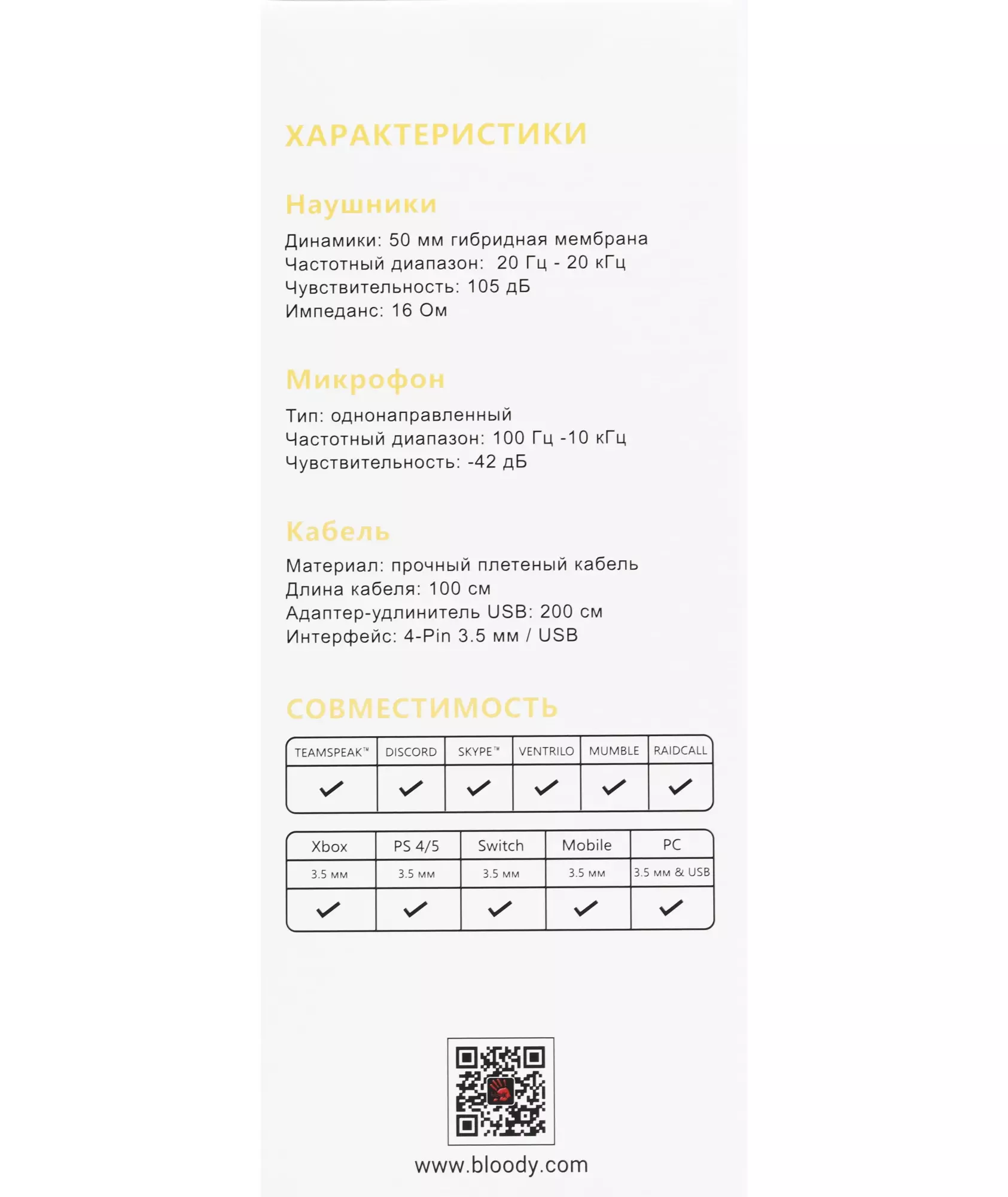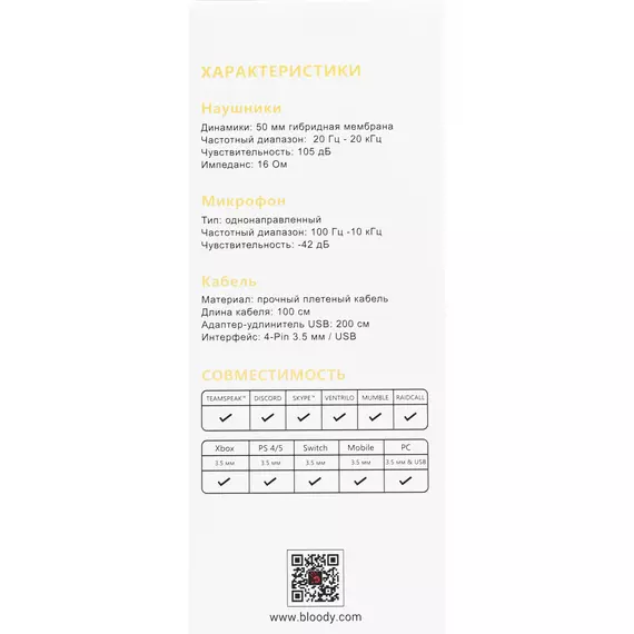 | Тип соединения гарнитуры | проводные USB/3,5 мм |