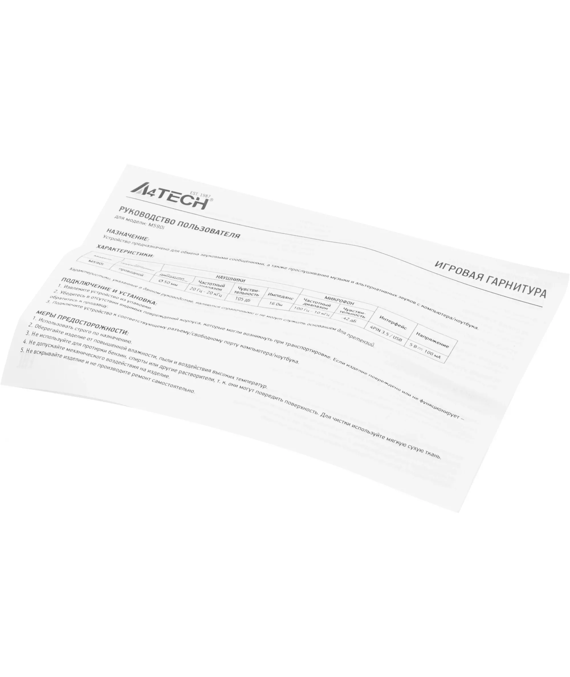 | Вес (без шнура) | 285 г |