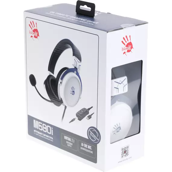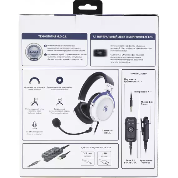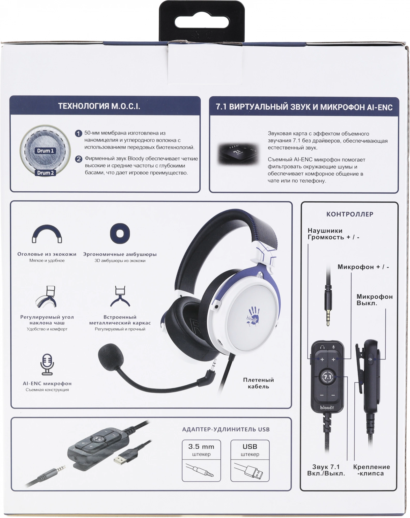 Наушники с микрофоном A4-Tech Bloody M590i SPORTS NAVY синий/белый 1м мониторные USB оголовье
