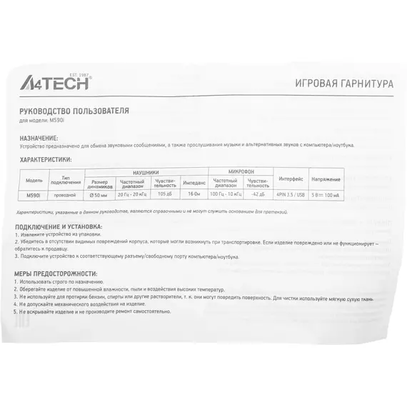 | Тип соединения гарнитуры | проводные USB/3,5 мм |