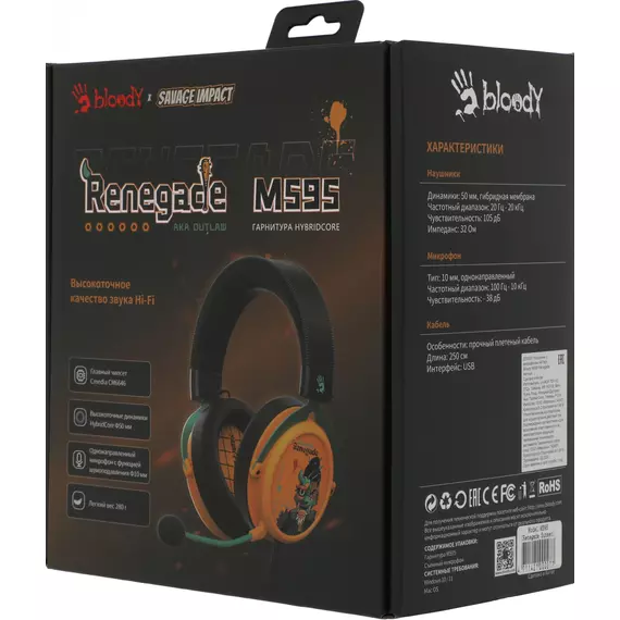 Наушники с микрофоном A4-Tech Bloody M595 Renegade желтый/рисунок 2.3м мониторные USB оголовье