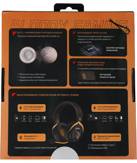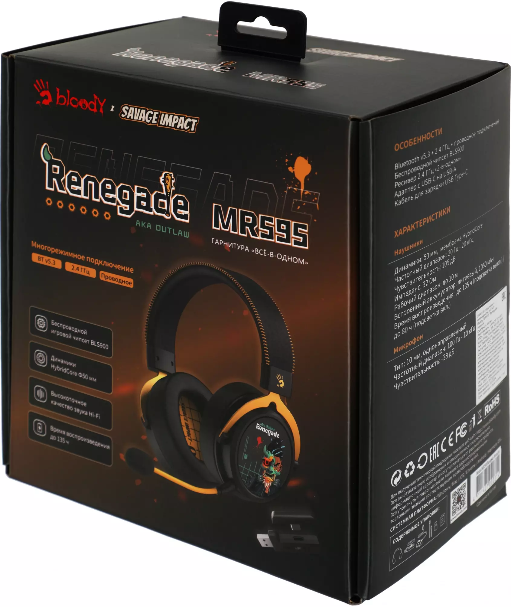 Наушники с микрофоном A4-Tech Bloody MR595 Renegade черный/рисунок мониторные BT/Radio оголовье