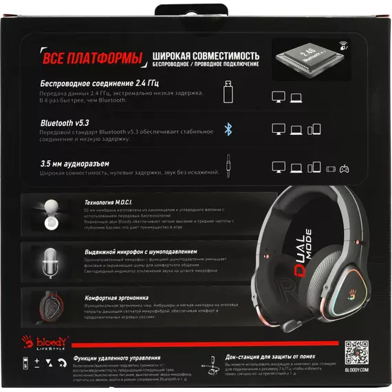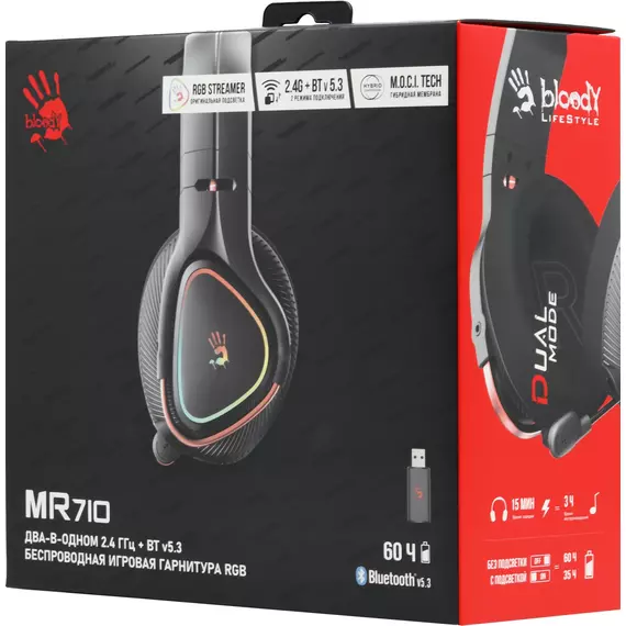 Наушники с микрофоном A4-Tech Bloody MR710 Black 1.5м мониторные BT/Radio оголовье