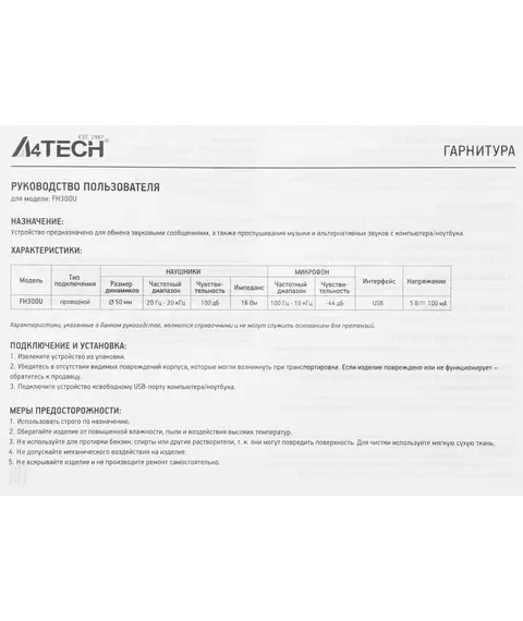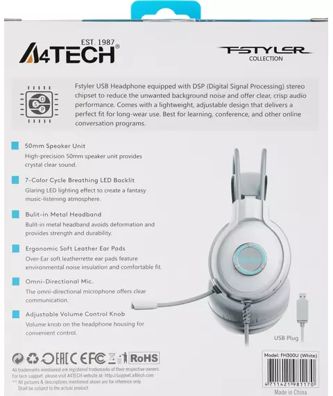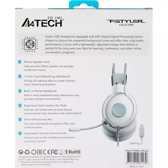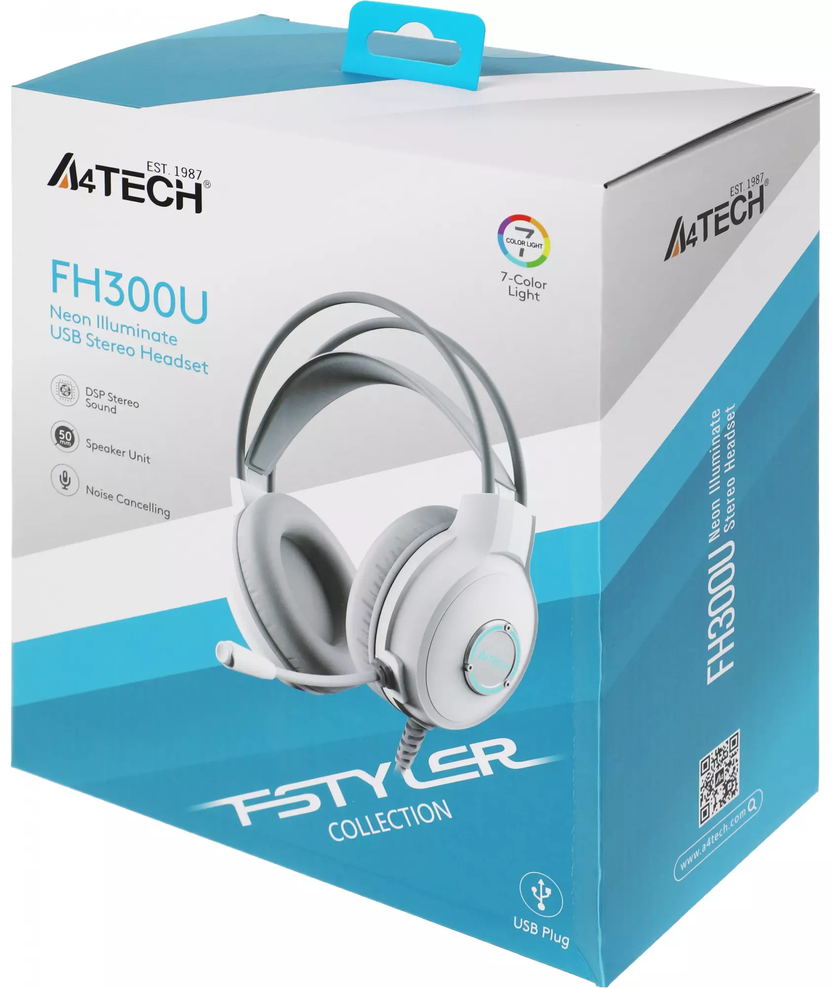 Наушники с микрофоном A4-Tech Fstyler FH300U WHITE белый 2м мониторные USB оголовье