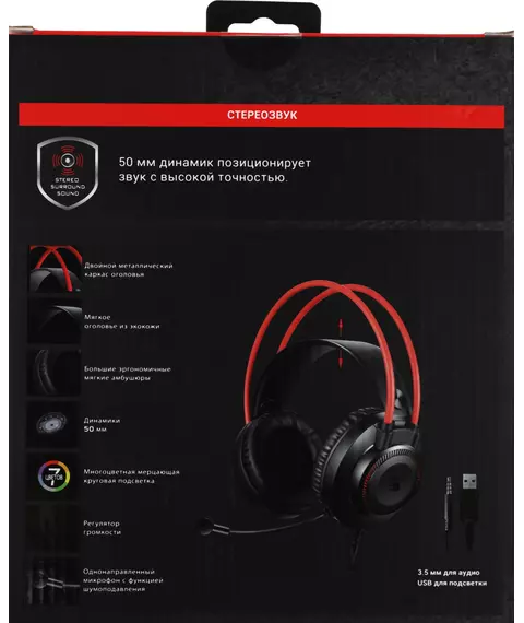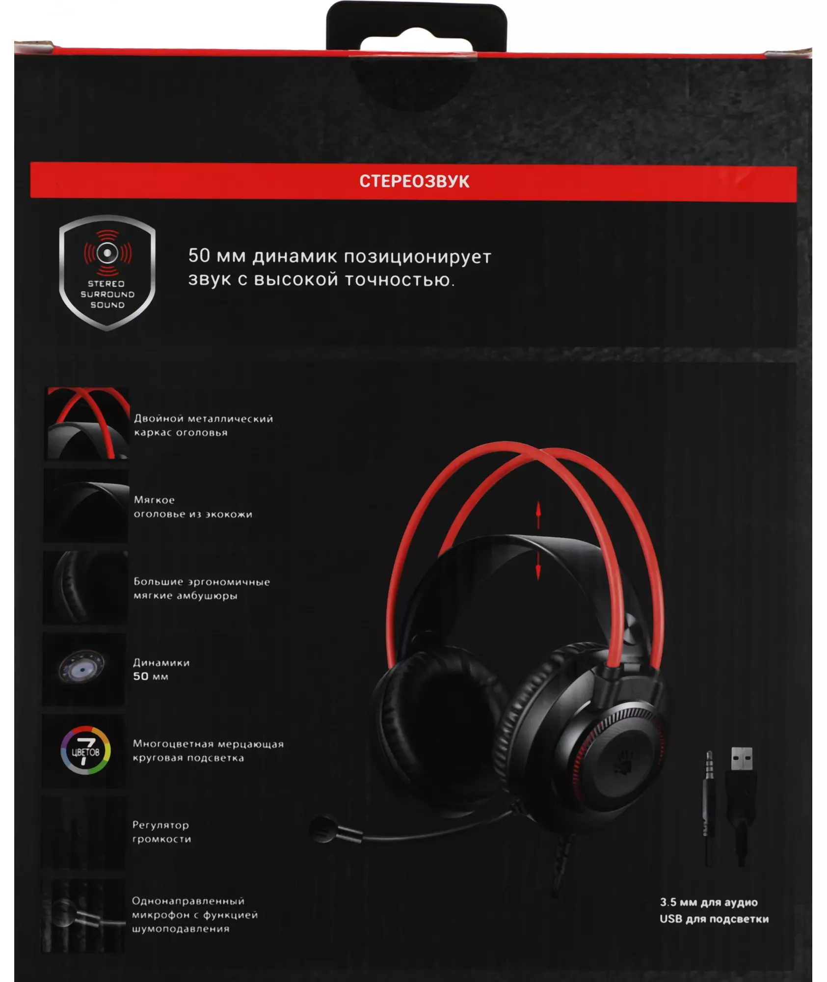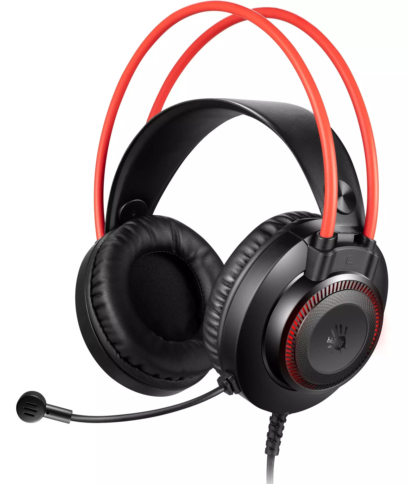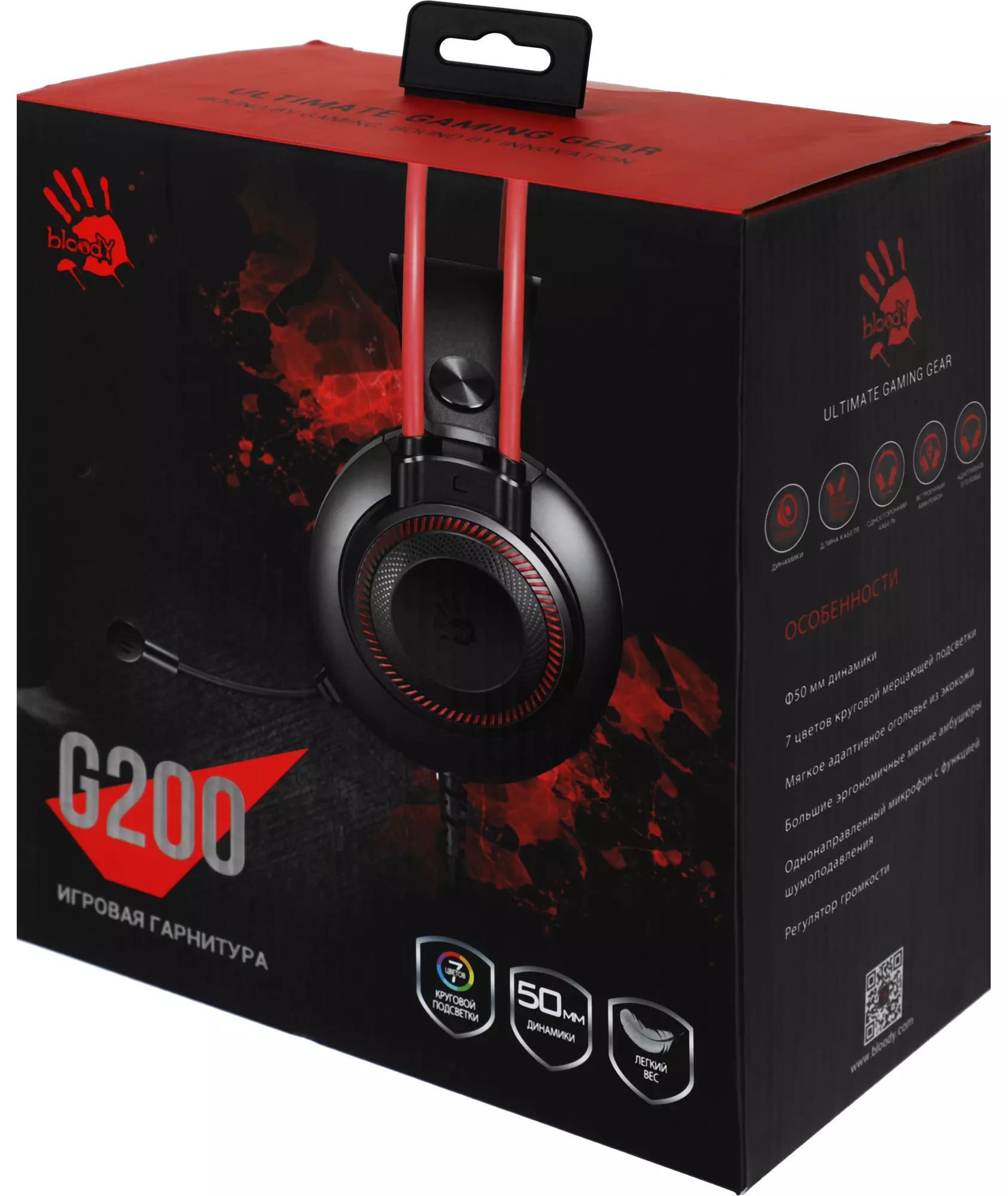 Наушники с микрофоном A4-Tech G200 черный/красный 2м мониторные оголовье [AUX3.5-4PIN +USB]