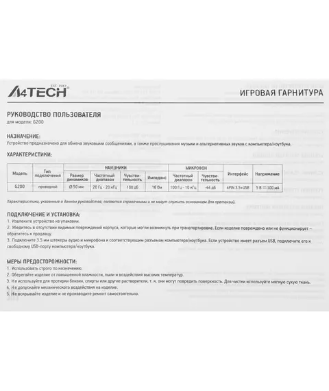 Описание A4-Tech G200 [AUX3.5-4PIN +USB]