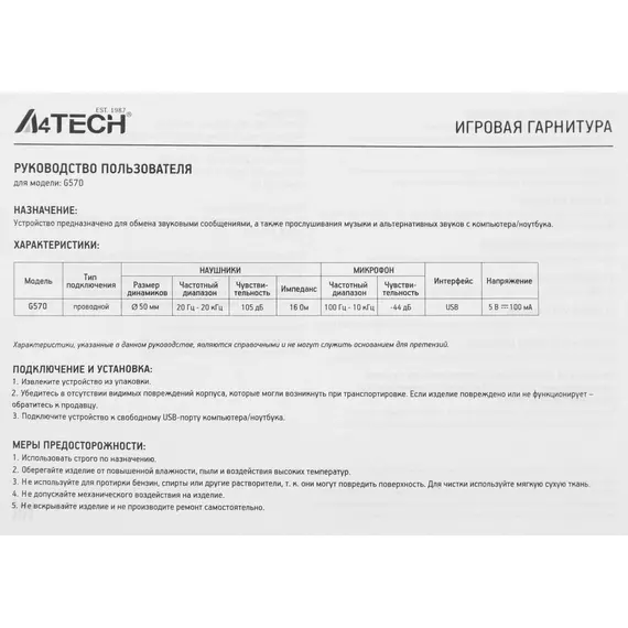 Описание A4-Tech G570 BLACK+GREY