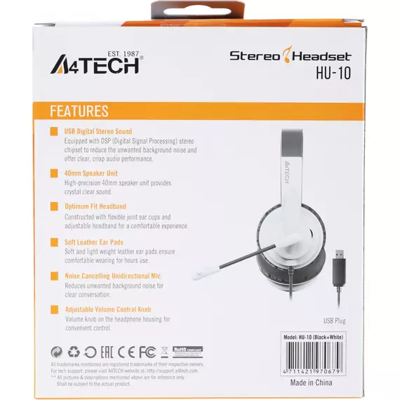 Наушники с микрофоном A4-Tech HU-10 BLACK+WHITE черный/белый 2м накладные USB оголовье