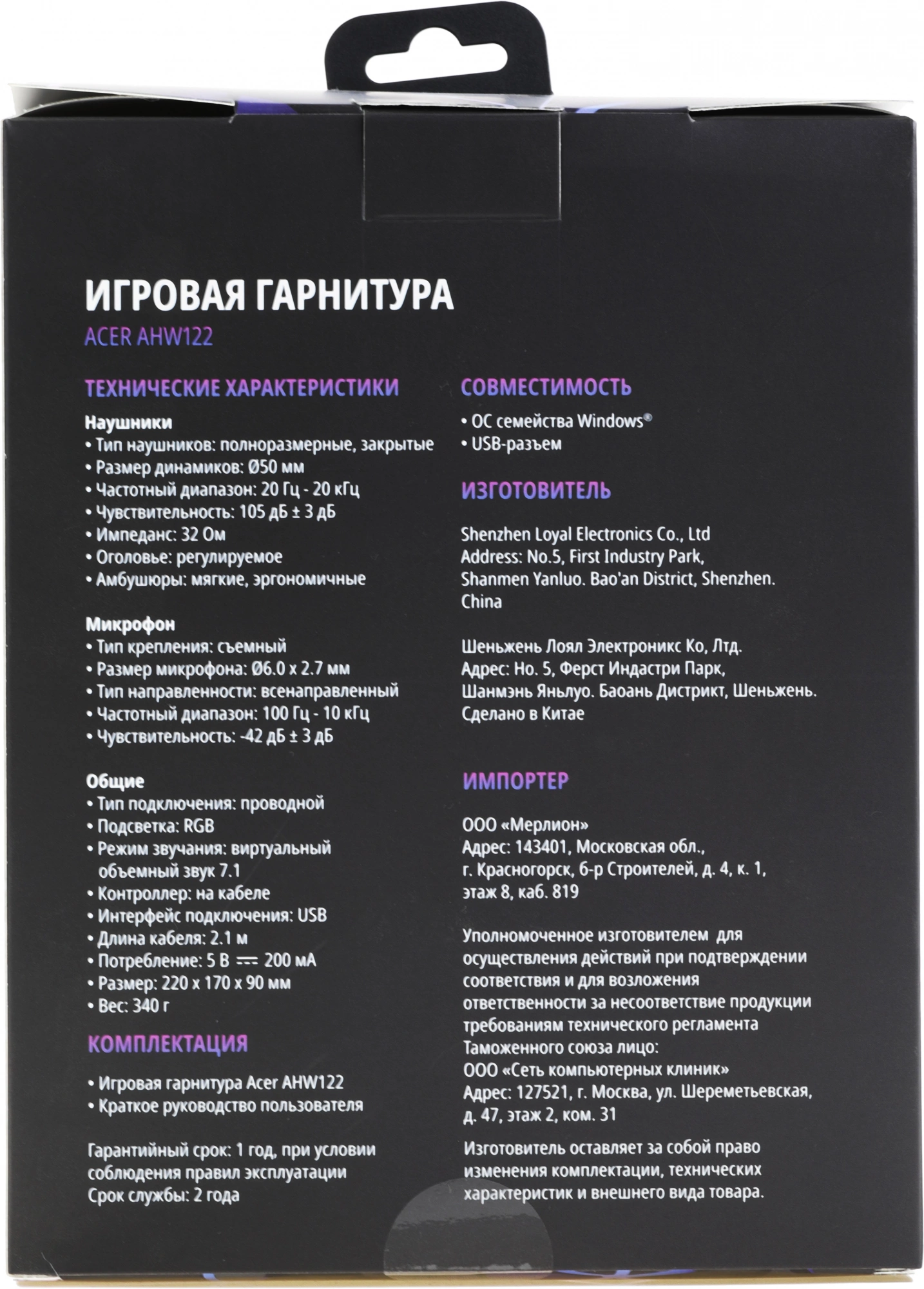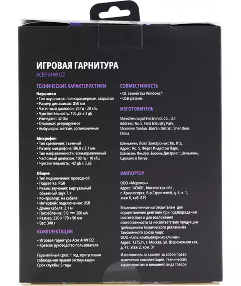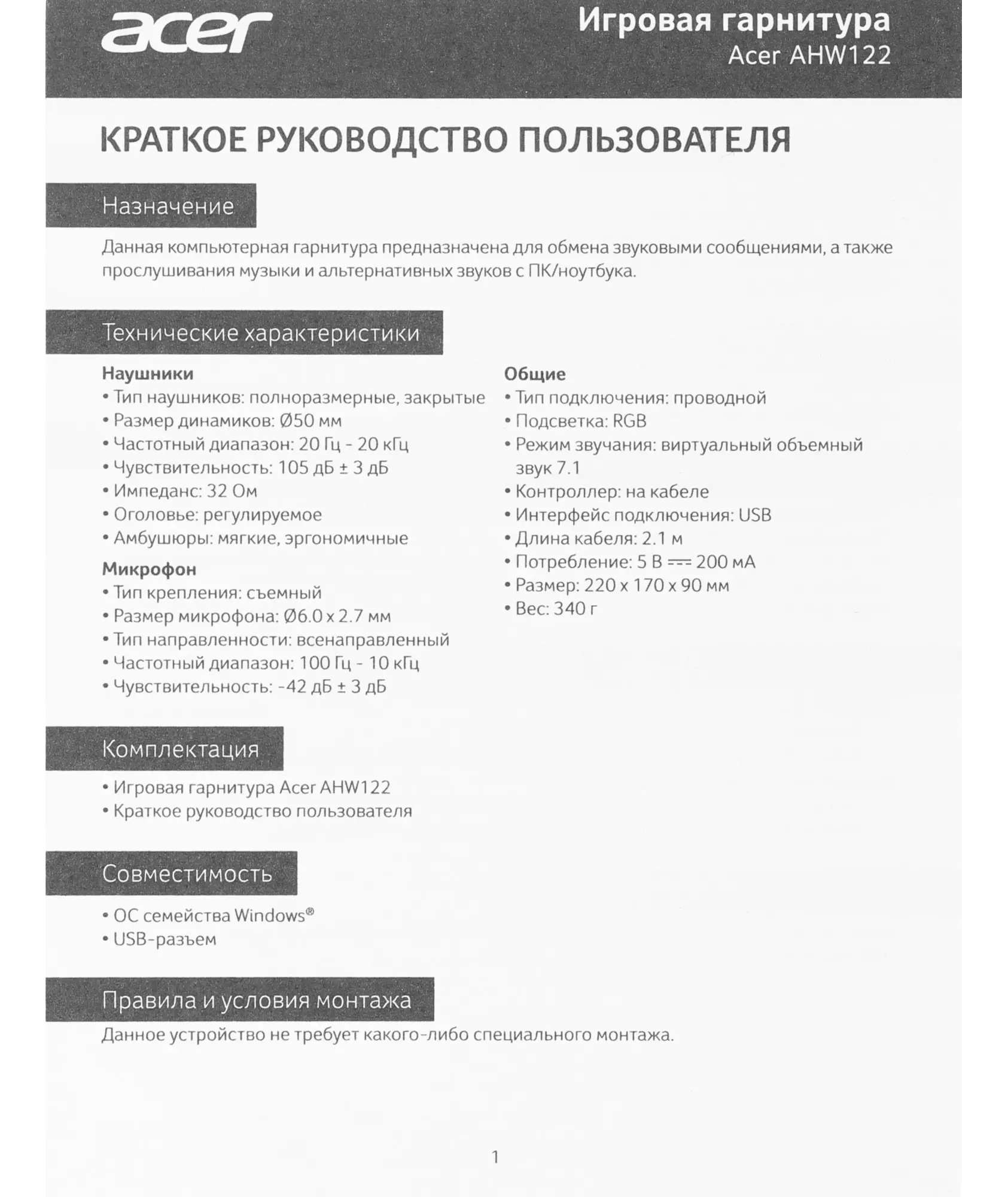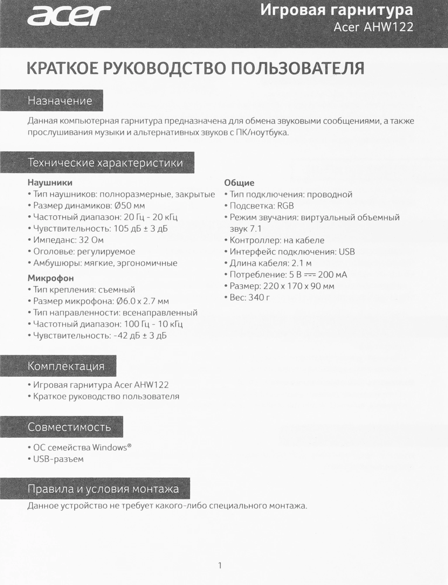 Описание Acer AHW122 [ZL.HDSCC.01U]