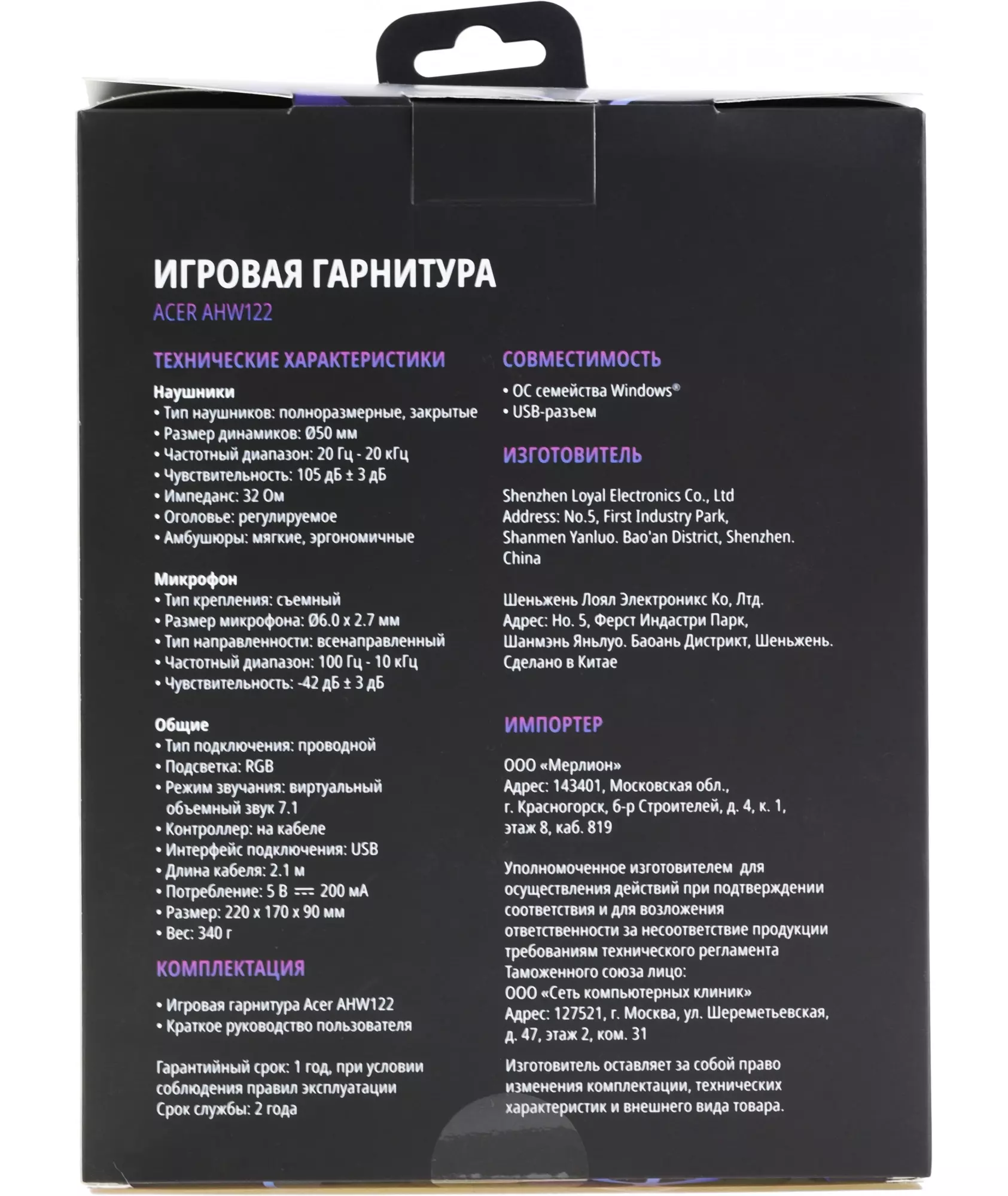 | Срок гарантии | 12 мес. |