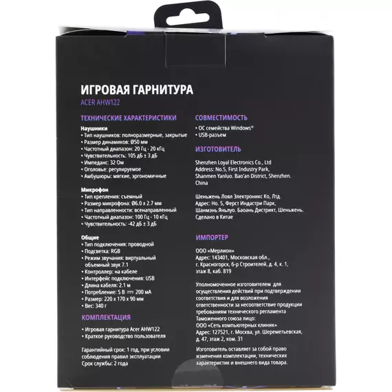 | Особенности | Игровая гарнитура с поддержкой виртуального звука 7.1. Съемный микрофон. Вкл/выкл микрофона, регулировка громкости, вкл/выкл подсветки - на на кабеле. Удобное крепление наушников обеспечивает поворот чашек для большего комфорта. Мягкие амушюры с хорошей звукоизоляцией. Длинный провод. |