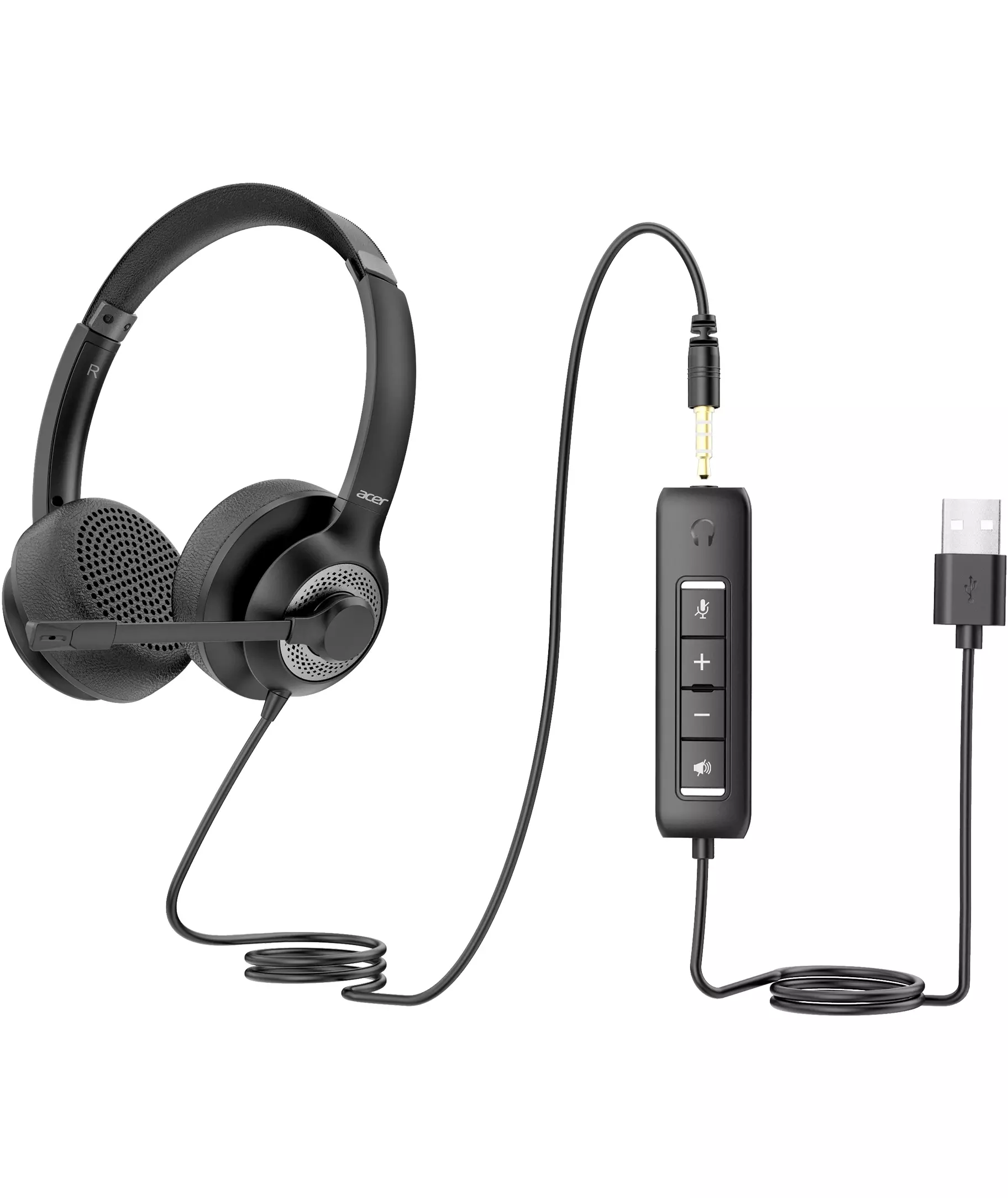 Наушники с микрофоном Acer OHW309 черный 2.8м накладные USB оголовье [ZL.HDSEE.004]