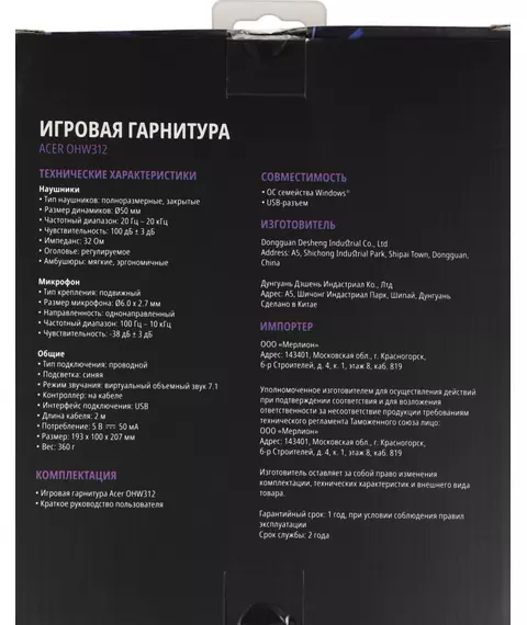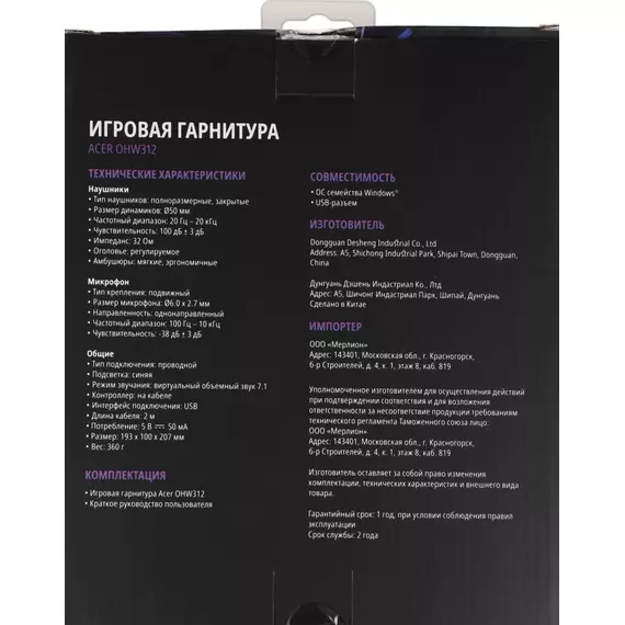 Описание Acer OHW312 [ZL.HDSEE.007]