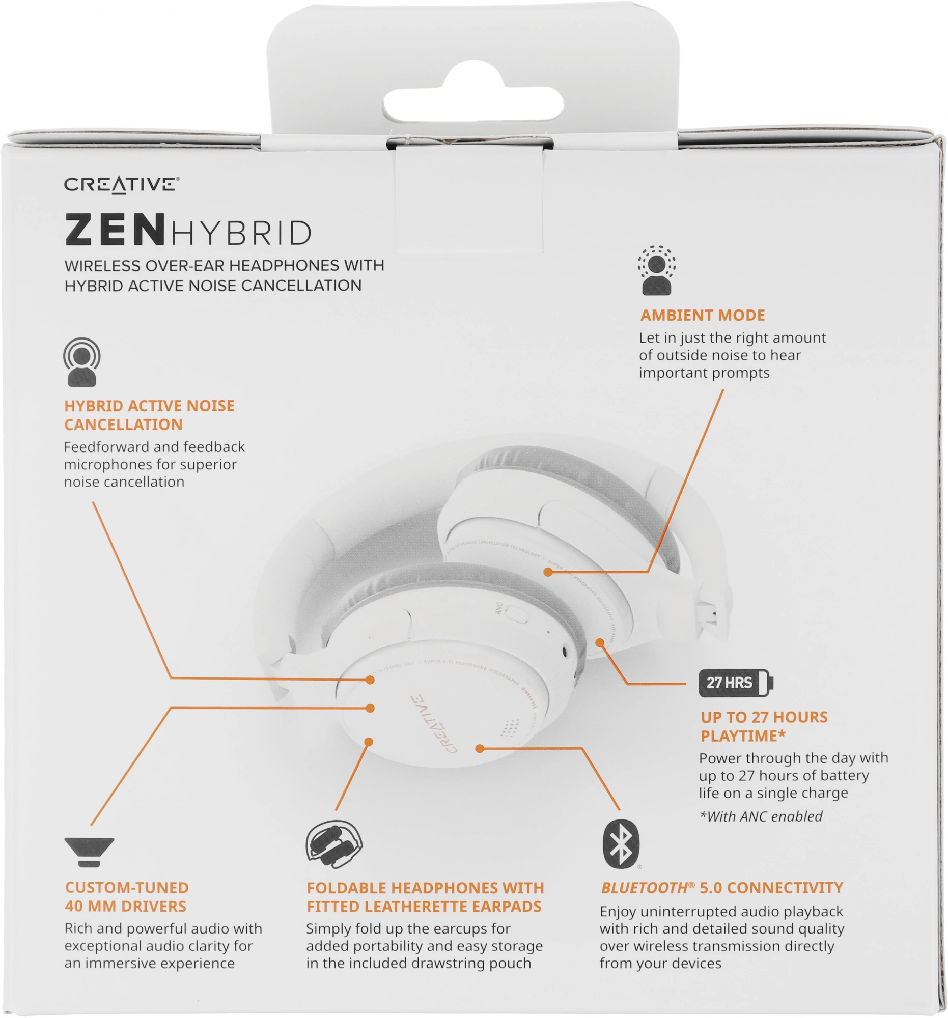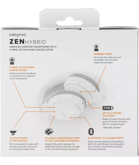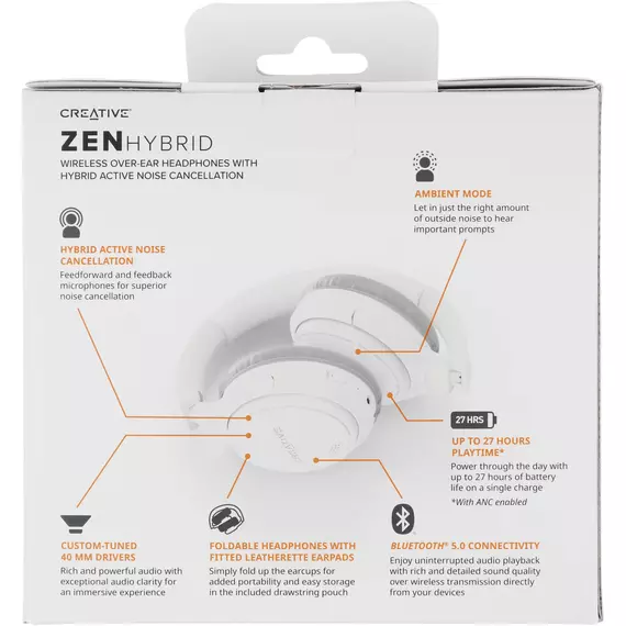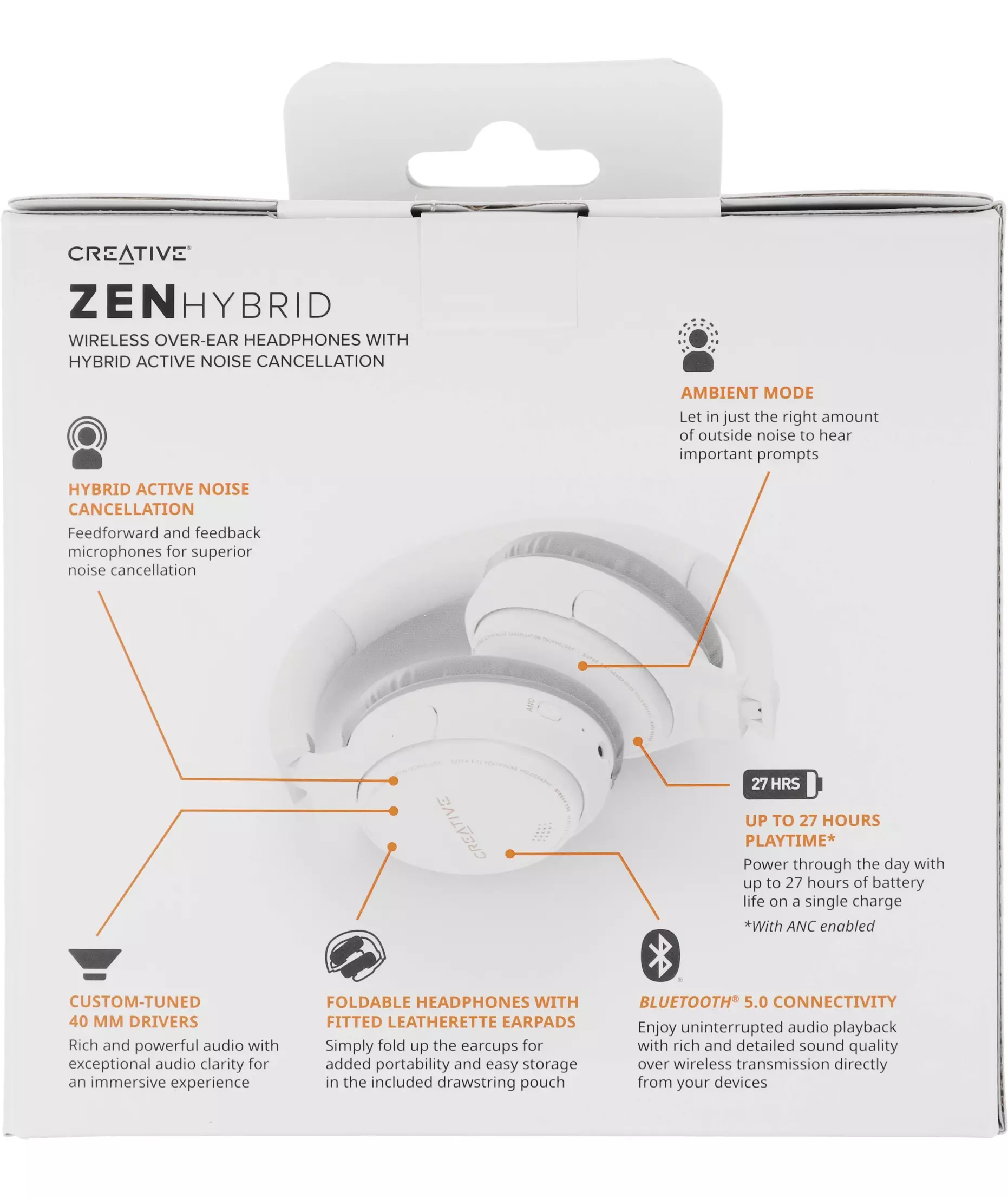 Гарнитура мониторные Creative Zen Hybrid 1.2м белый беспроводные bluetooth оголовье [51EF1010AA000]