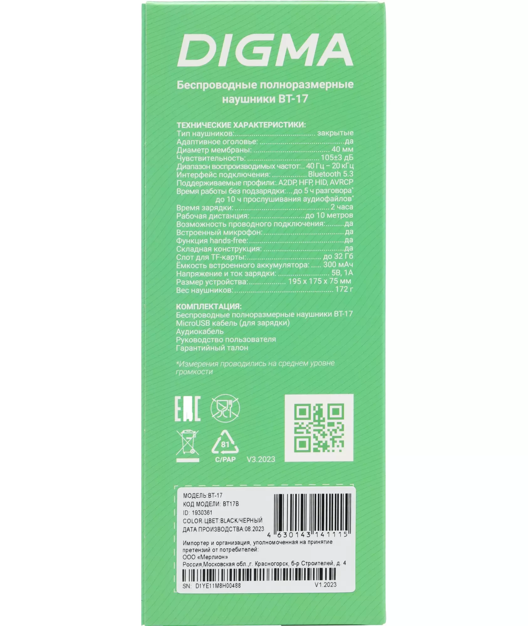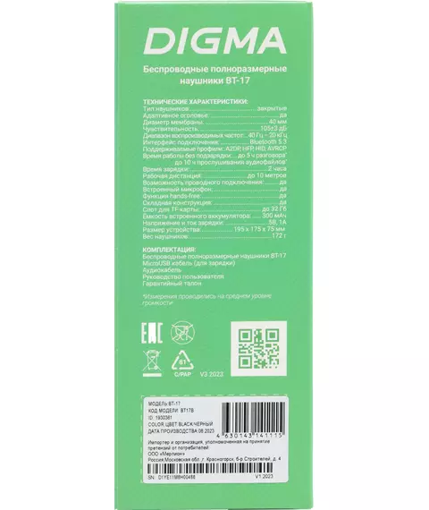 Описание Digma BT-17 [BT17B]