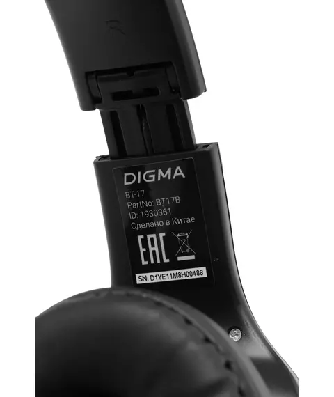 Гарнитура накладные Digma BT-17 черный беспроводные bluetooth оголовье [BT17B]