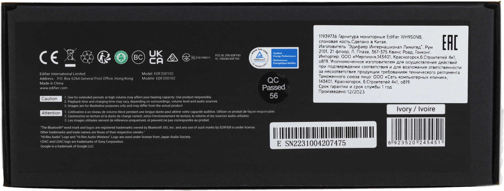 Гарнитура Edifier WH950NB мониторные слоновая кость беспроводные bluetooth оголовье