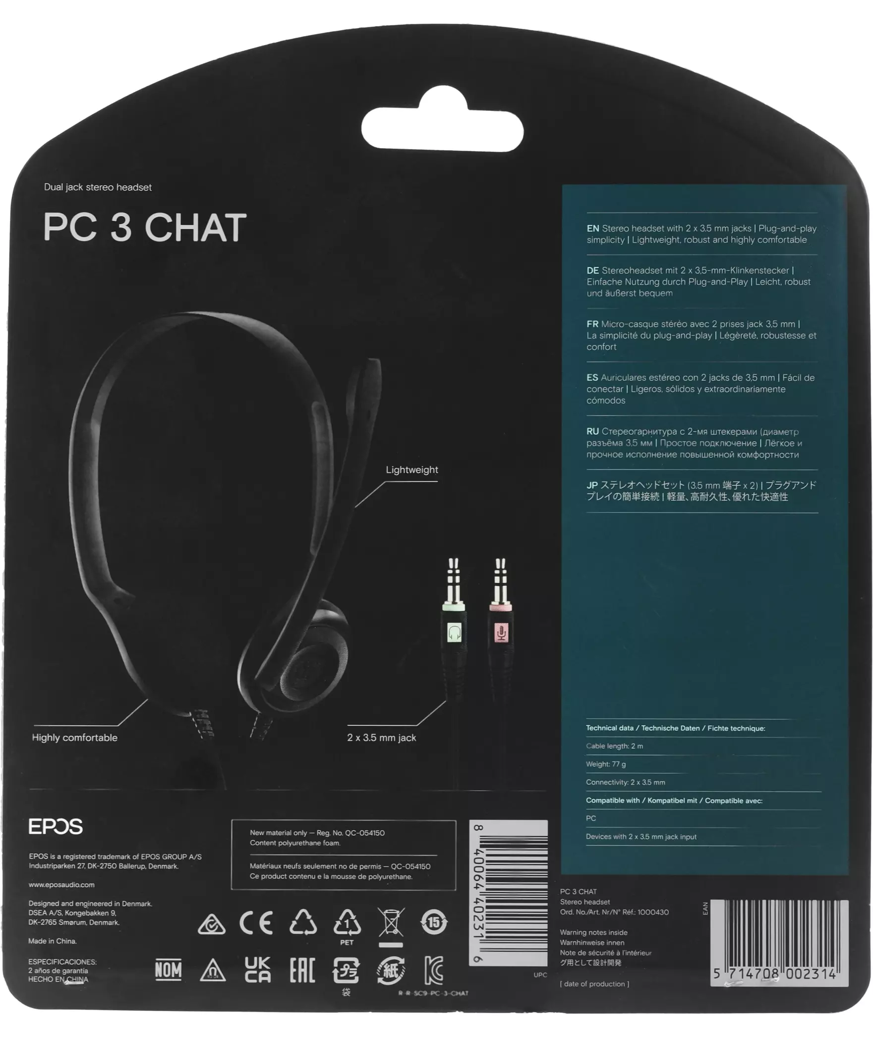 Наушники EPOS PC 3 Chat черный 2м накладные оголовье [1000430]