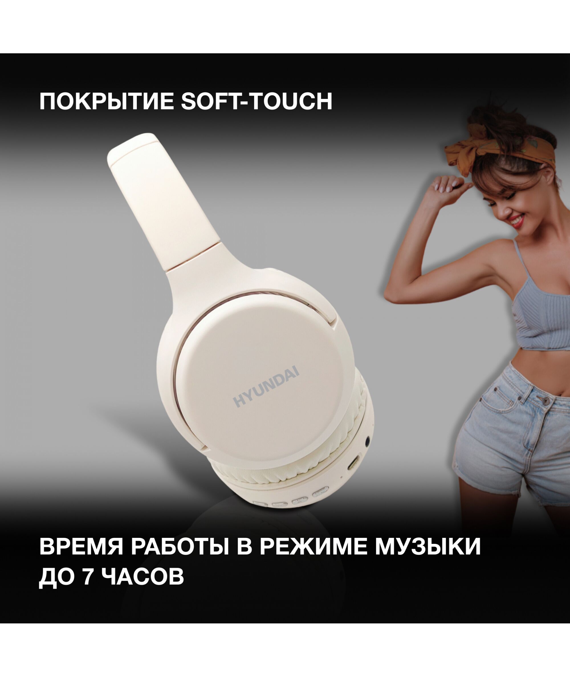 Гарнитура Hyundai H-HP101 белый беспроводные bluetooth оголовье