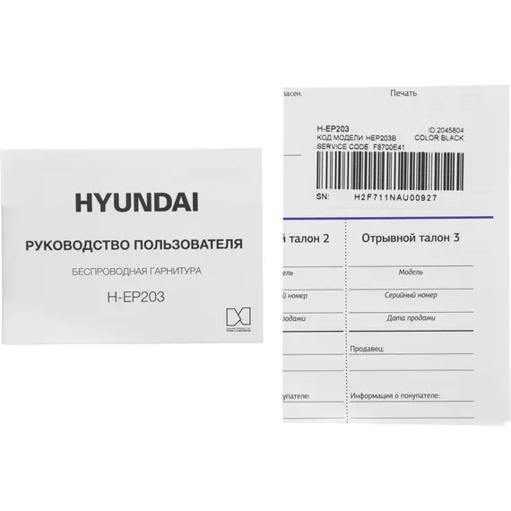 Гарнитура Hyundai HEP203B внутриканальные черный беспроводные bluetooth в ушной раковине