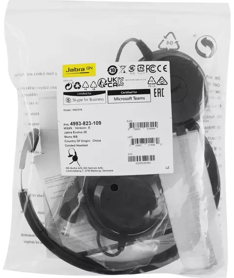Описание Jabra Evolve 20 MS Mono [4993-823-109]