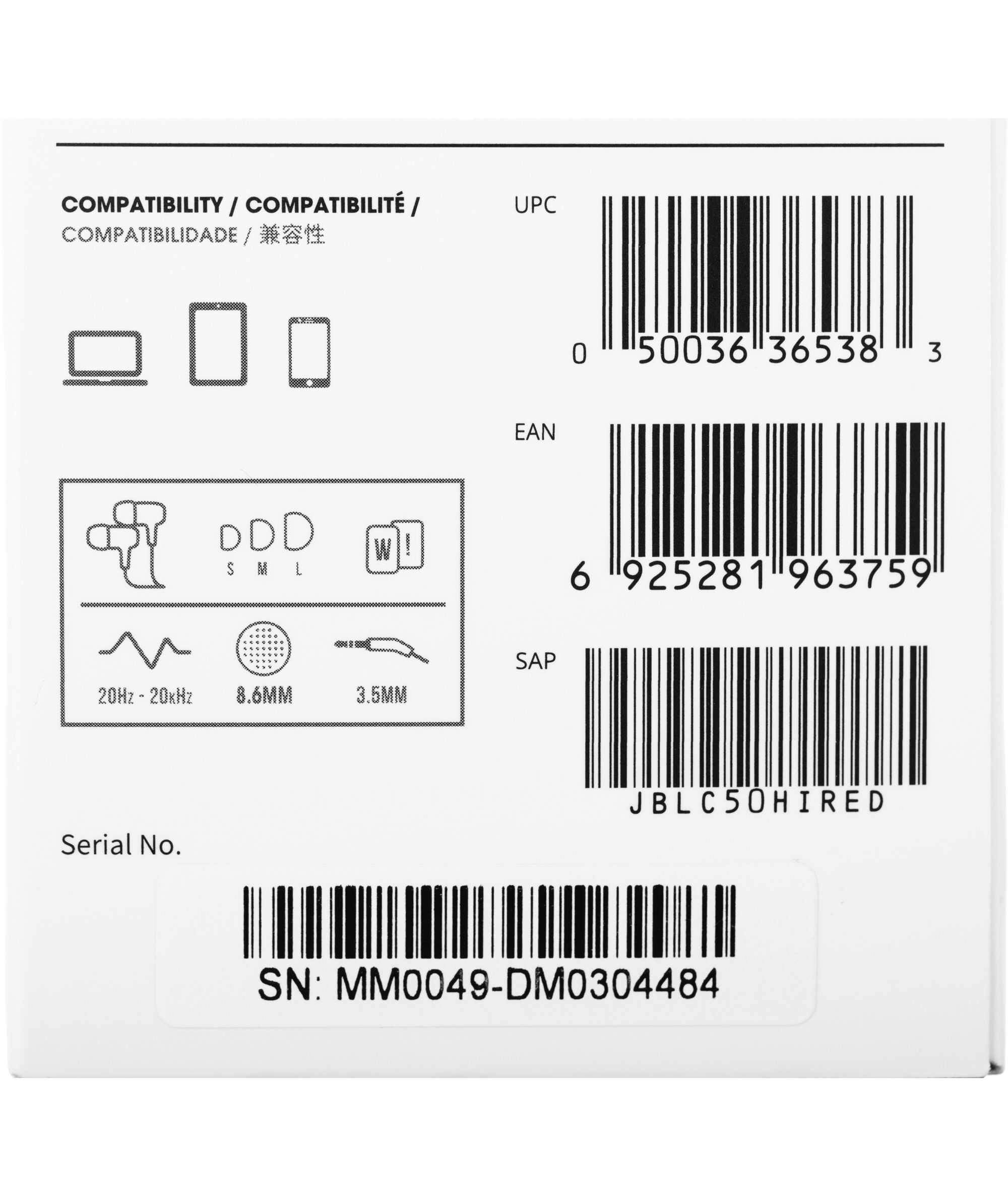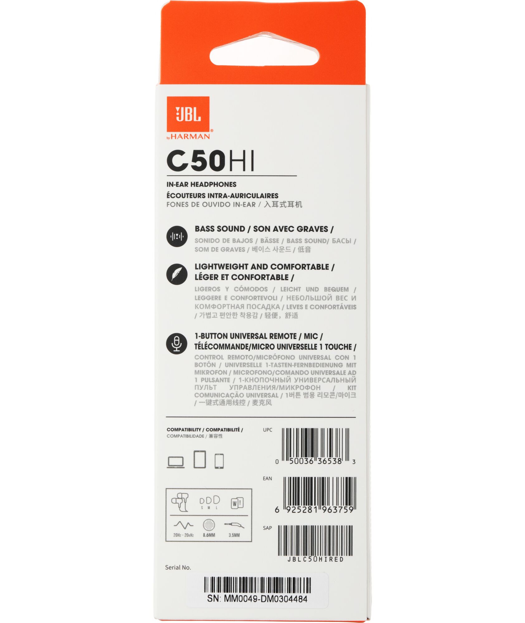 Наличие товара JBL C50HI [C50HIRED]
