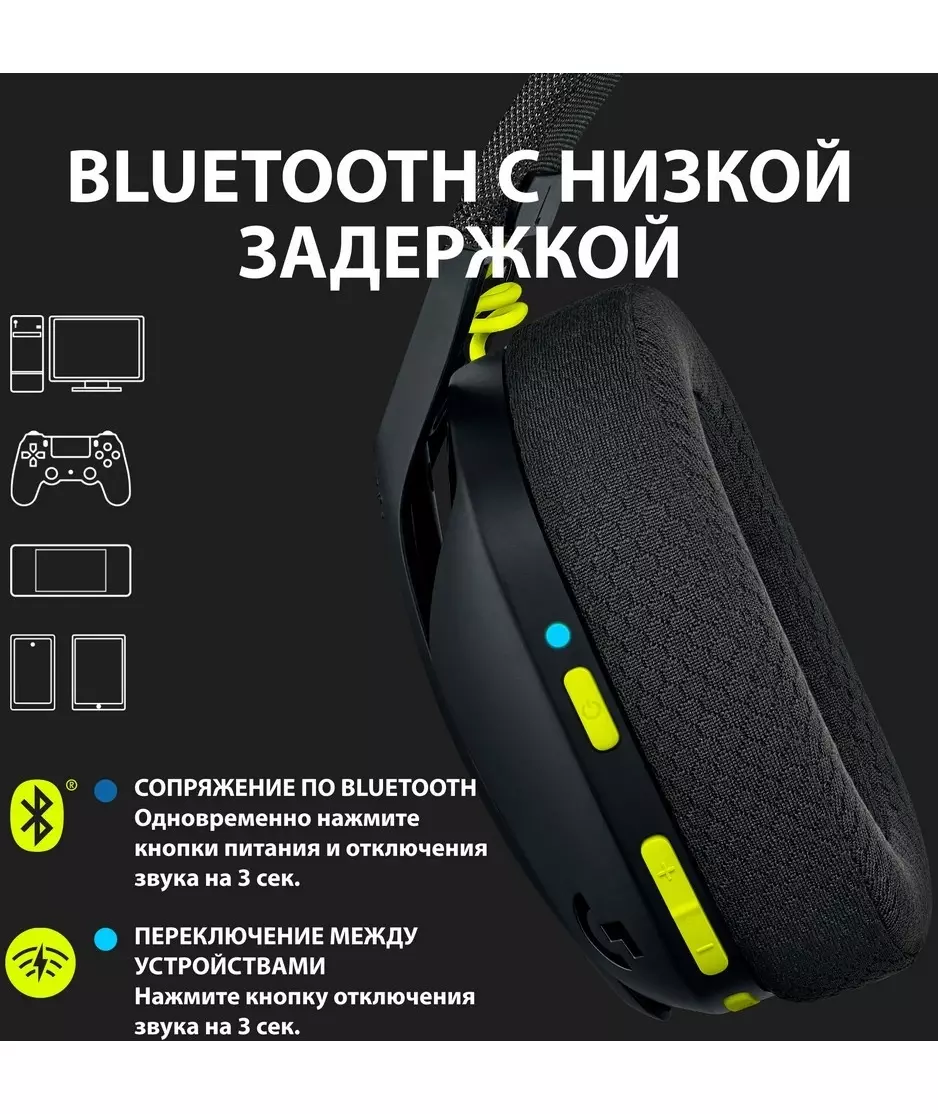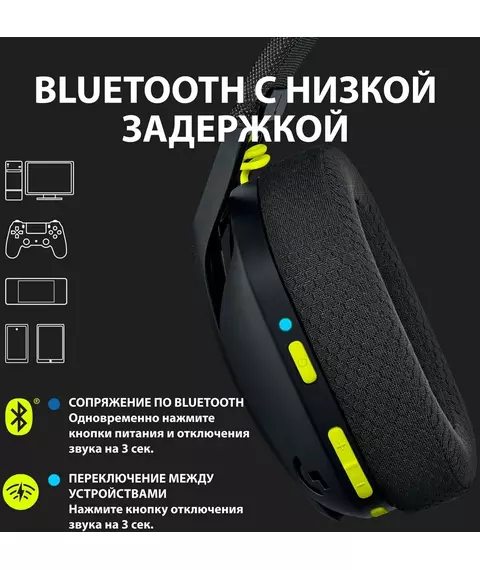 Наушники с микрофоном Logitech G435 черный/желтый накладные BT/Radio оголовье [981-001053]