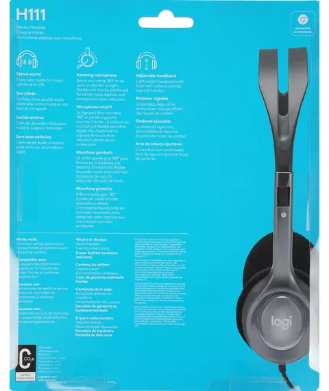 Наушники с микрофоном Logitech H111 серый 2.35м накладные оголовье [981-000588]