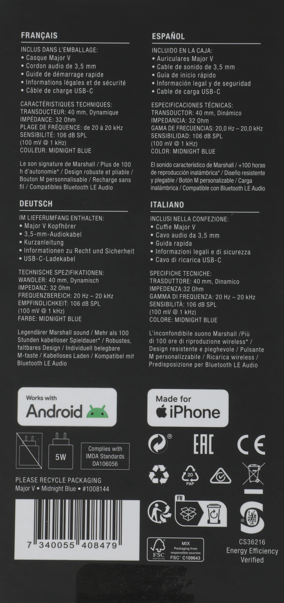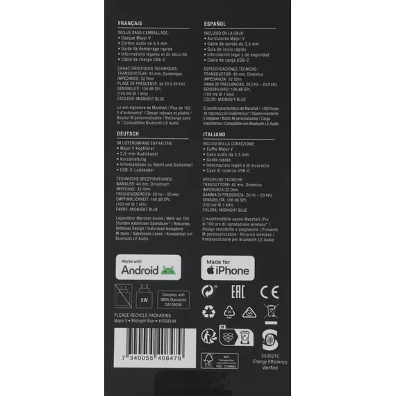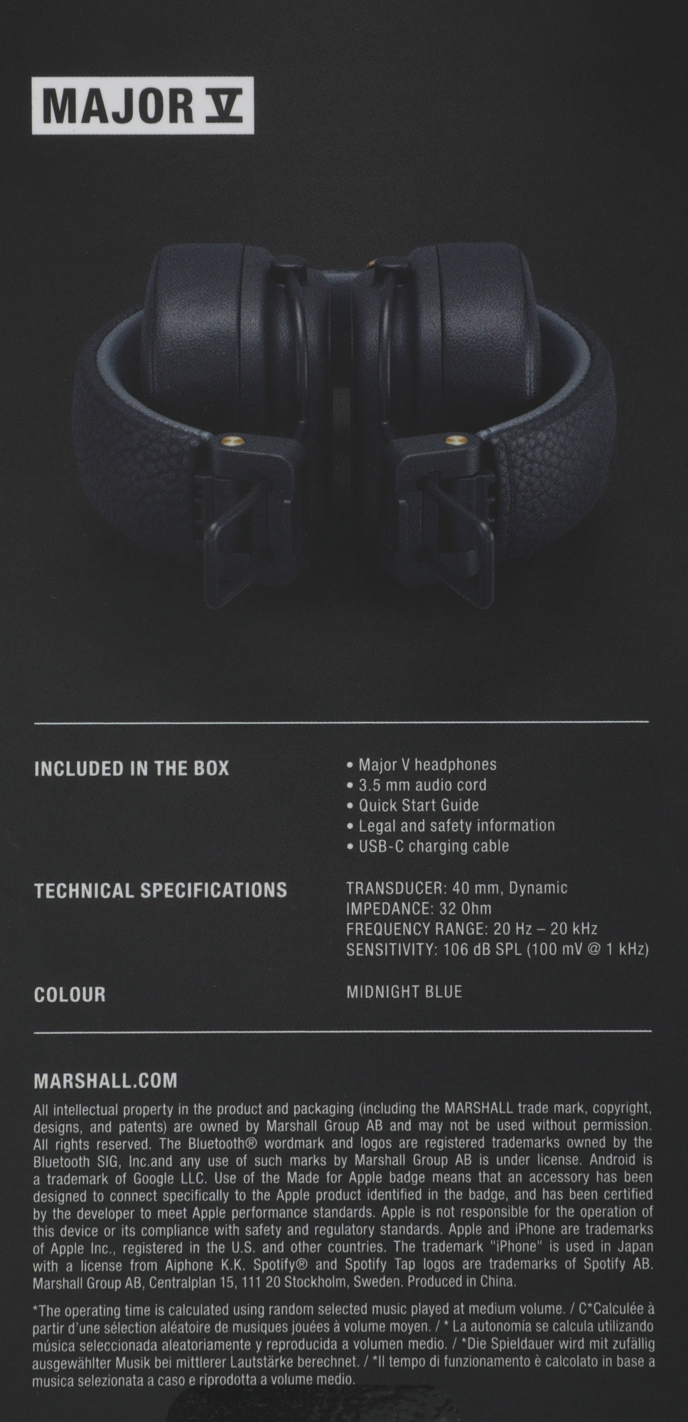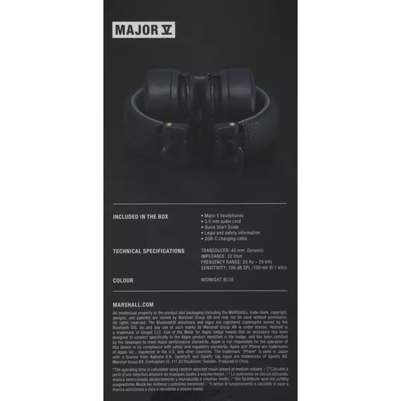 Описание Marshall Major V [MAJOR V MIDNIGHT BLUE]