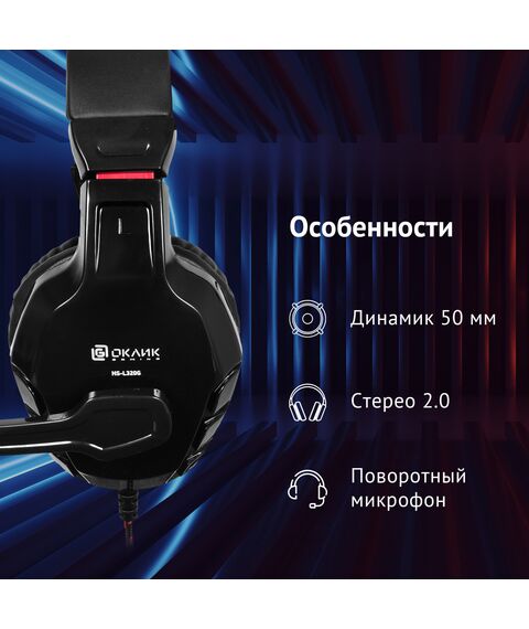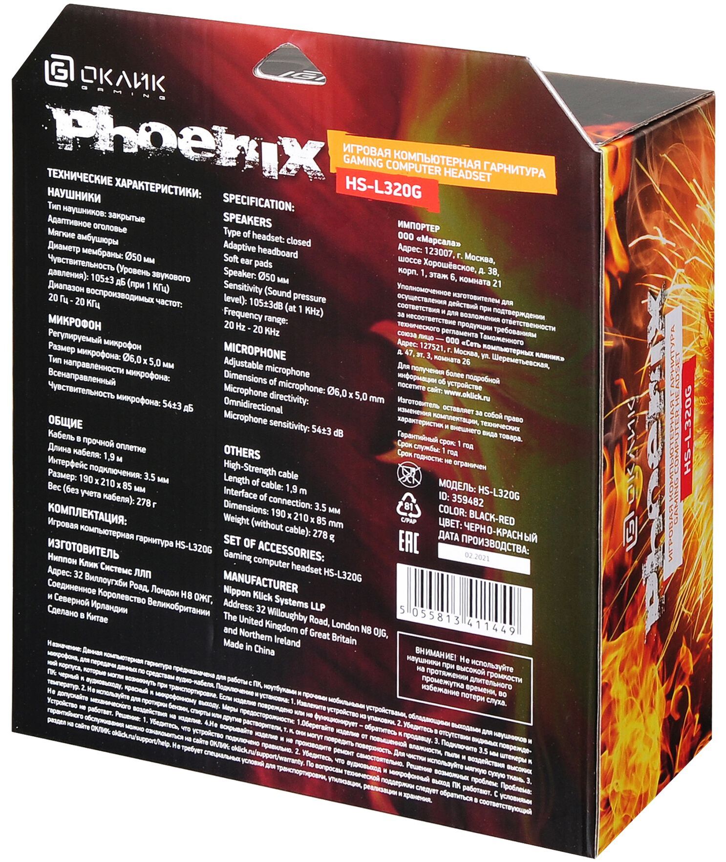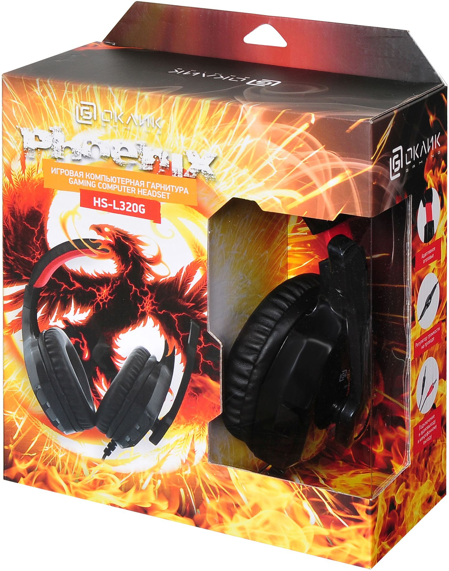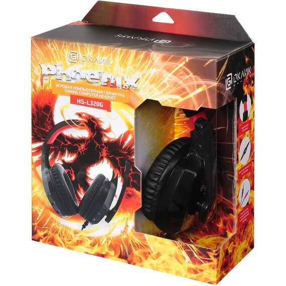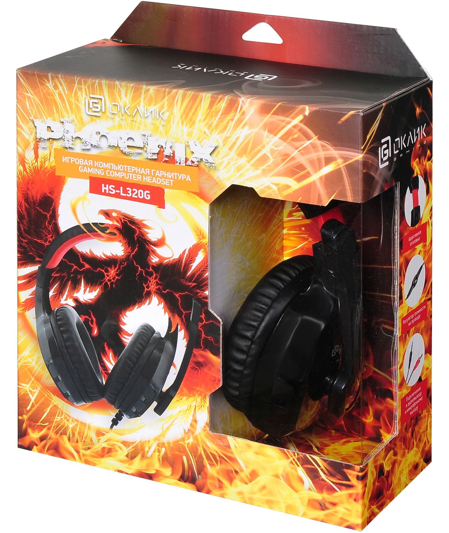Наушники с микрофоном Oklick HS-L320G Phoenix черный/красный 1.9м мониторные оголовье [359482]