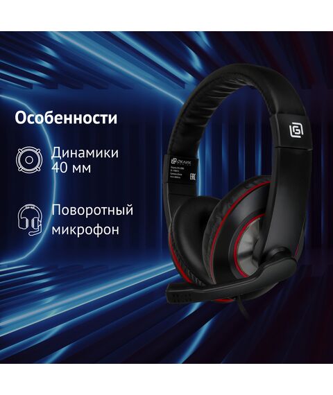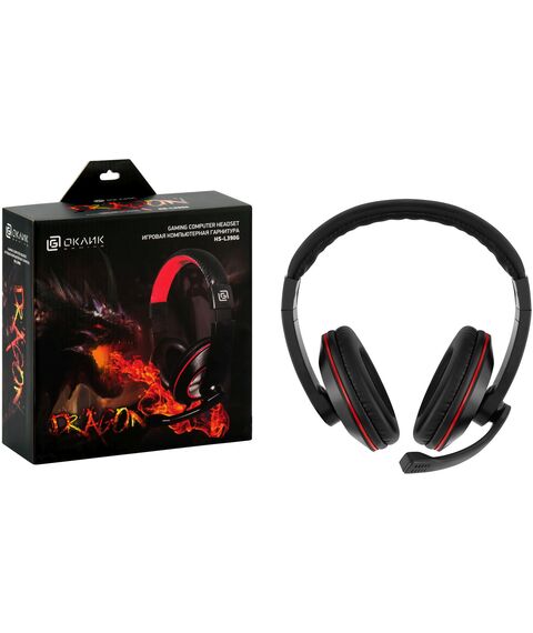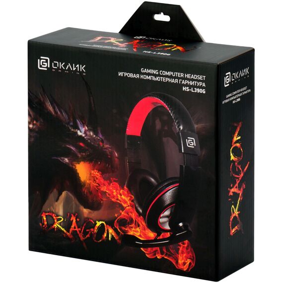 Наушники с микрофоном Oklick HS-L390G DRAGON черный/красный 1.8м мониторные оголовье [1100413]