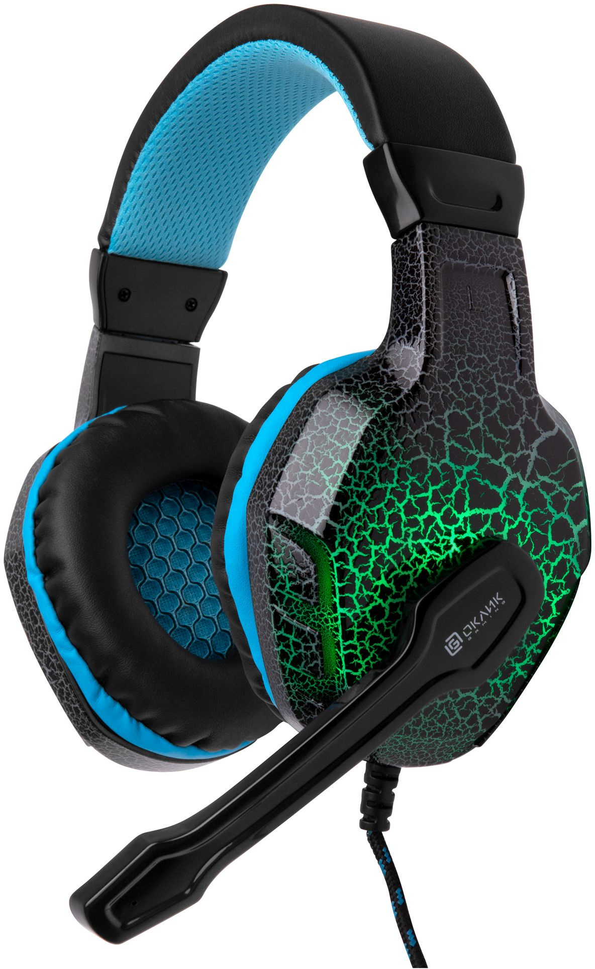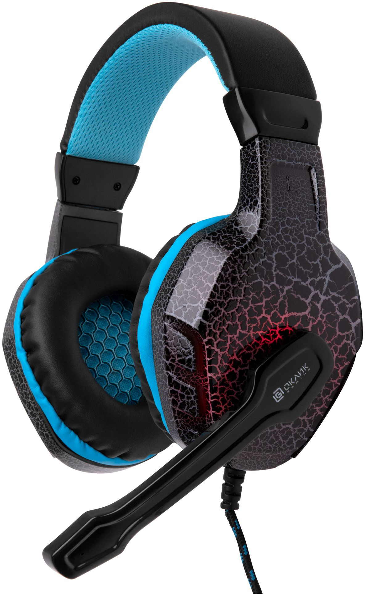 Наушники с микрофоном Oklick HS-L400G ZEUS черный/синий 2.2м мониторные оголовье [359480]